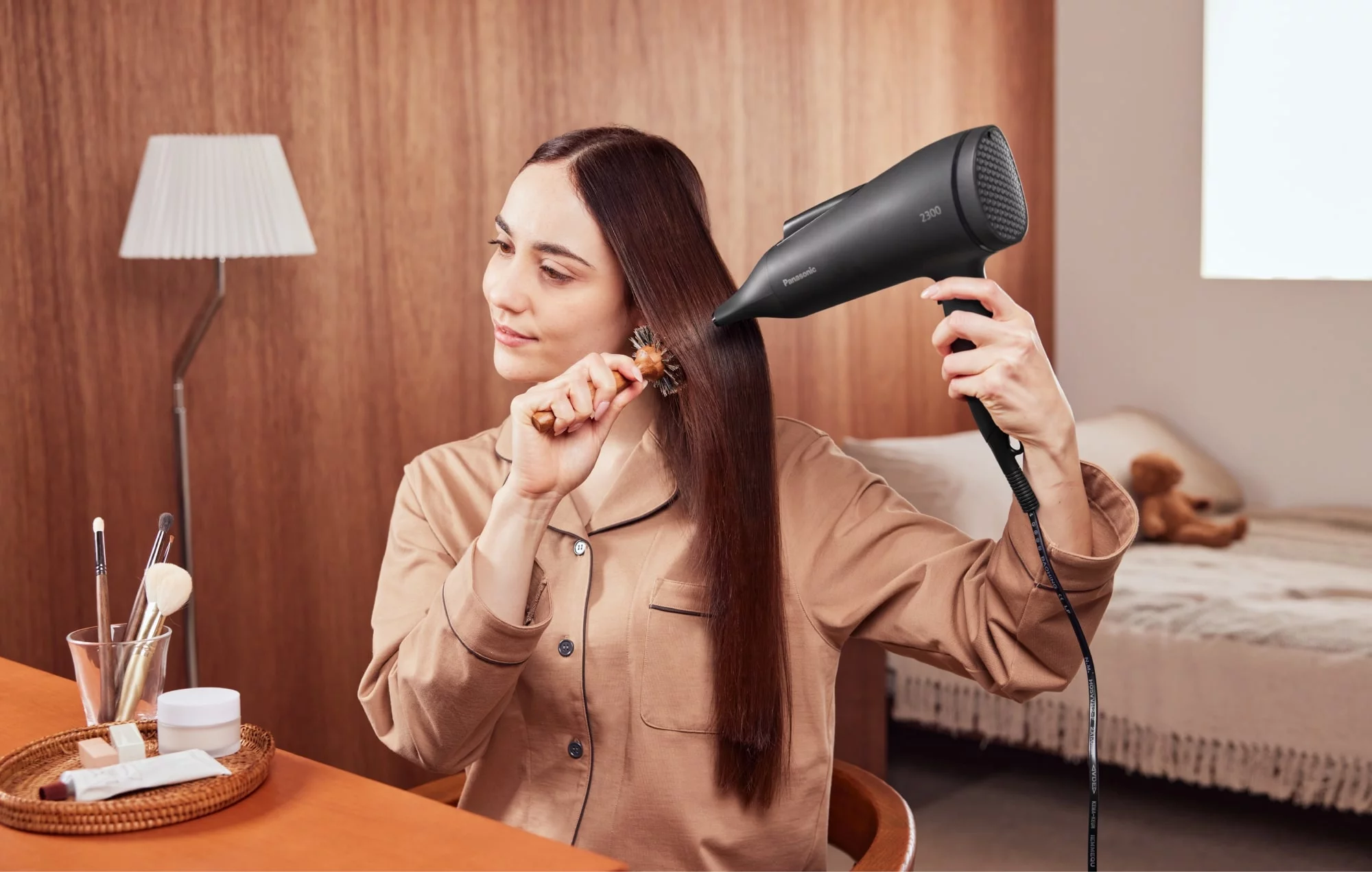 Фен Panasonic EH-NE85-K865 з потужністю 2300 Вт забезпечує швидке висушування завдяки поєднанню високого повітряного потоку та насадки Air Boost. Іонізація зменшує статичний заряд і допомагає зберегти гладкість волосся. Передбачені індивідуальні налаштування температури й швидкості, а режим холодного обдуву фіксує результат укладання.