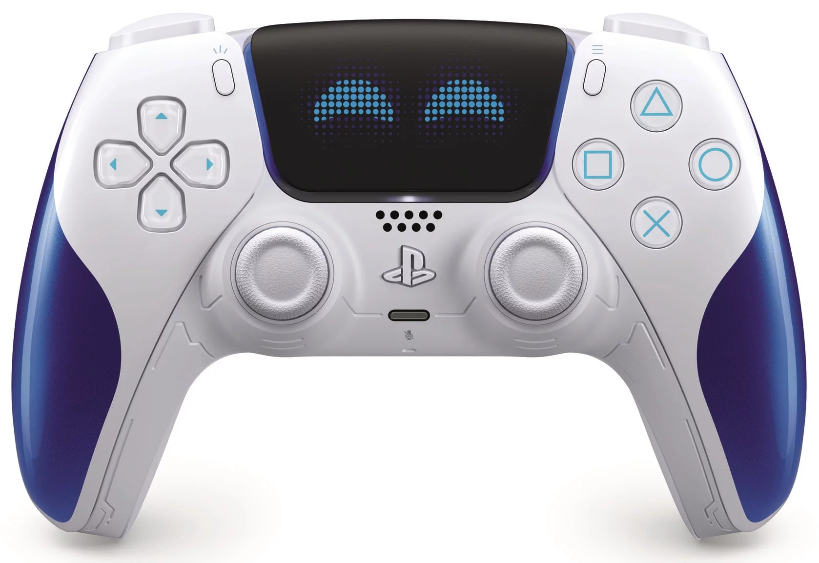 Пориньте в пригоду з роботом ASTRO і з цим бездротовим контролером DualSense лімітованої серії. Яскравий дизайн має фірмові сині елементи ASTRO на ручках і кнопках, а також усміхнені очі на сенсорній панелі. На вас чекають незабутні пригоди!