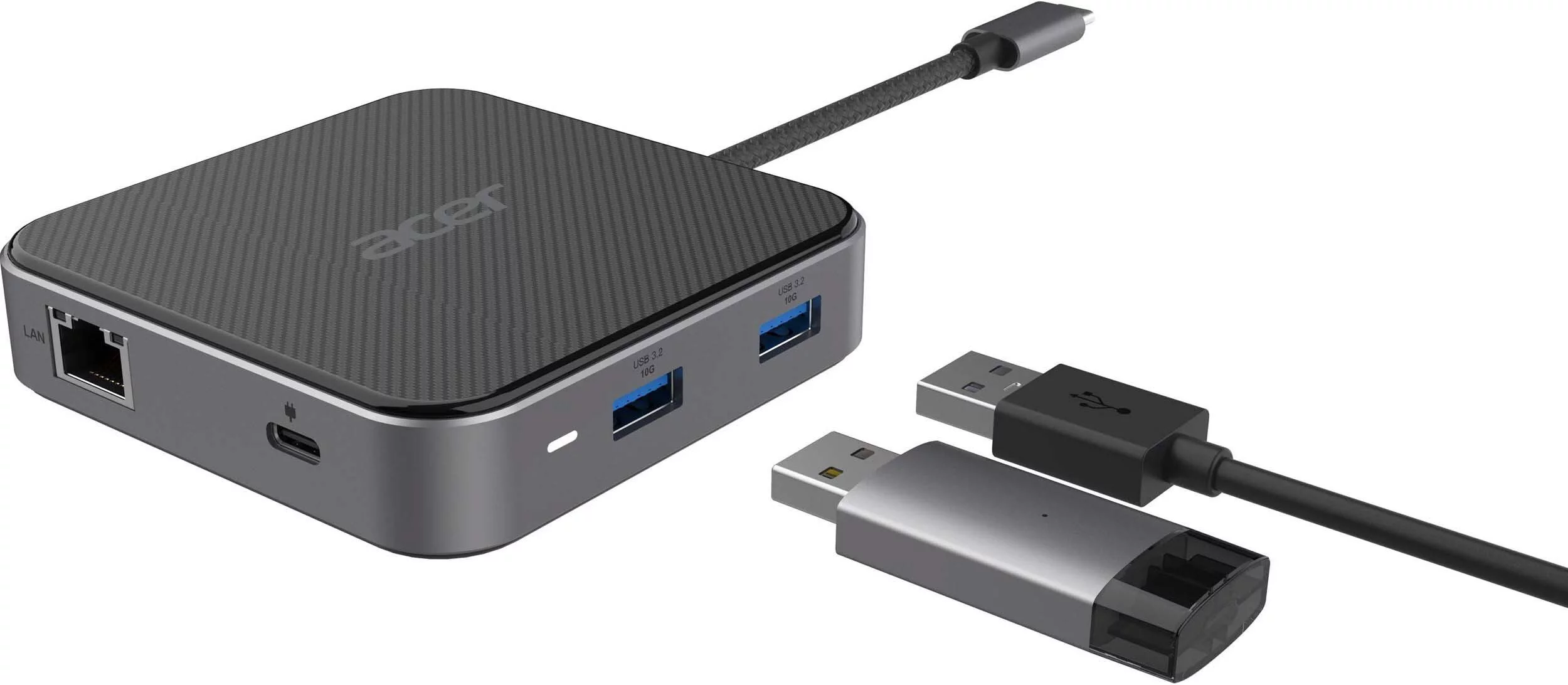 Ця док-станція дає змогу використовувати порт USB-C на ноутбуці для додаткового під'єднання периферійних пристроїв. Ви можете під'єднати адаптер живлення USB-C вашого ноутбука до порту PowerDelivery док-станції, щоб одночасно живити його. Завдяки компактному дизайну док-станцію можна взяти з собою куди завгодно.