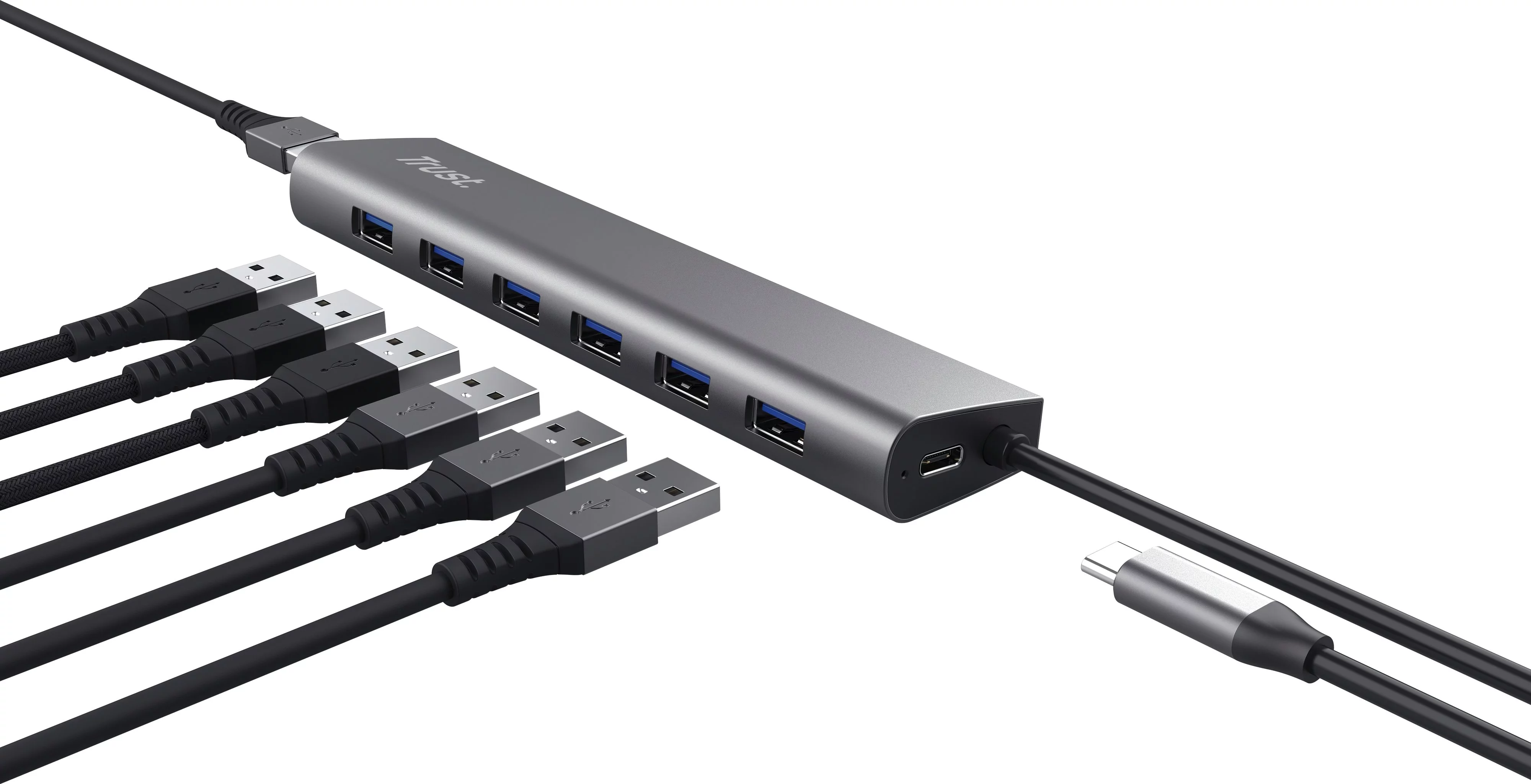 Стильний алюмінієвий багатопортовий адаптер додає ноутбуку порти HDMI, USB-C, USB, зчитувач карток пам'яті та мережевий порт, а для підключення використовує один порт USB-C. Сьоме небо. Сім - справді щасливе число для Halyx: підключайте до ПК або ноутбука до 7 USB-пристроїв і скористайтеся зручним портом живлення USB-C, коли знадобиться додатковий приріст потужності! Вперед на повну. Не гайте часу з цим USB-концентратором - завдяки високій швидкості передачі даних до 5 Гбіт/с через порти USB 3.2 Gen 1, Halyx дозволяє передавати файли та багато іншого в найкоротші терміни. Виконуйте свою роботу. Halyx - це робота без напруги. Цей алюмінієвий концентратор, що під'єднується за допомогою одного 80-см кабелю USB, дуже простий у використанні та дає змогу повністю зосередитися на роботі. Приступайте до справи!