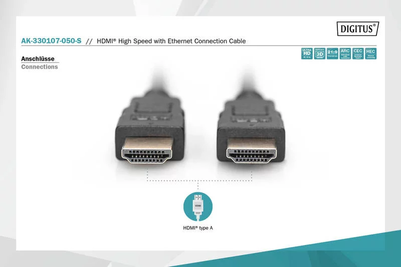 Цей відповідний кабель Full HD (1080p) і 3D з активним підсилювачем використовується для підключення аудіо/відео пристроїв, таких як Blu-ray плеєр, ігрові планшети чи консолі тощо, наприклад, до телевізора, монітора чи комп’ютера.