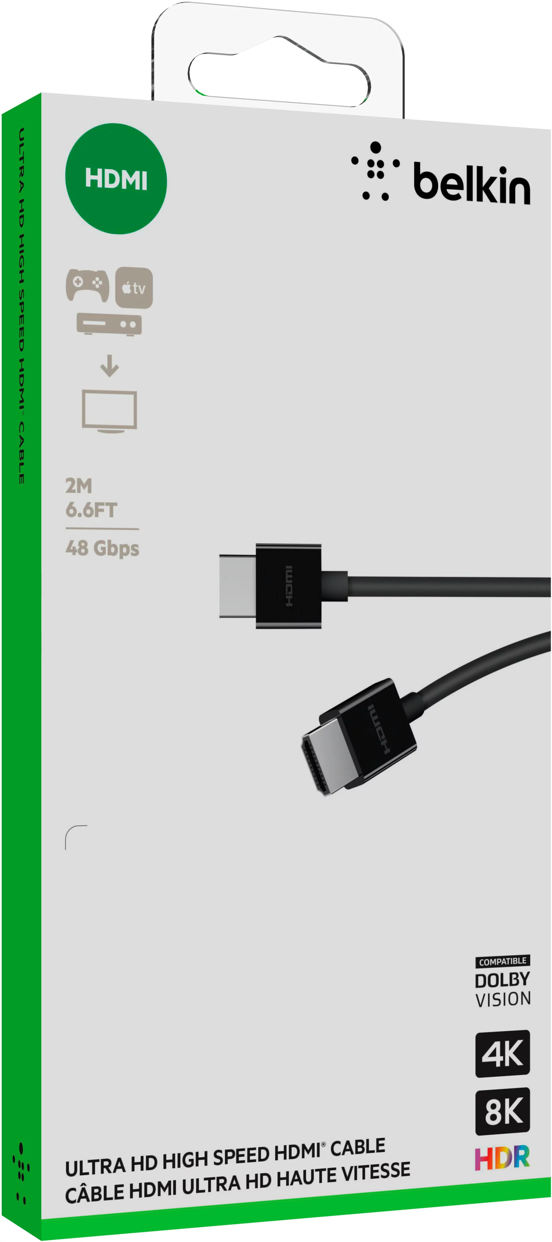 Кабель Belkin AV10175BT2MBKV2 довжиною 2 метри — це високошвидкісний HDMI-кабель стандарту 2.1, який забезпечує передачу відео та аудіо високої якості. Підтримка роздільної здатності до 8K, частоти оновлення до 120 Гц і функції High Speed Ethernet робить його ідеальним для сучасних телевізорів, ігрових консолей і систем домашнього кінотеатру. Міцна конструкція й стильний чорний дизайн гарантують довговічність і естетичний вигляд.