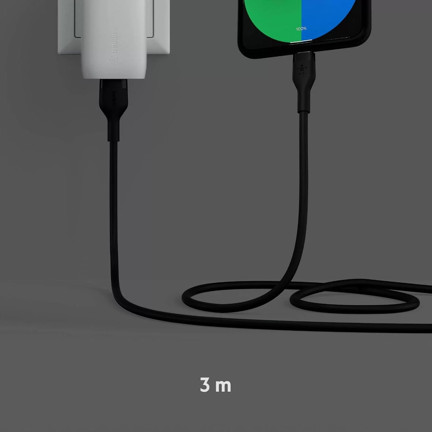 Кабель Belkin CAB008BT3MBK – це надійний і довговічний аксесуар для заряджання та синхронізації пристроїв з роз’ємом USB-C. Завдяки довжині 3 м він забезпечує зручність у використанні навіть на відстані. Витримує потужність до 60 Вт, що дозволяє швидко заряджати сумісні смартфони, планшети та ноутбуки. Гнучка силіконова оболонка запобігає сплутуванню та забезпечує комфортну експлуатацію, а магнітна кліпса допомагає акуратно зберігати кабель. Чорний колір надає стильного вигляду та універсальності.