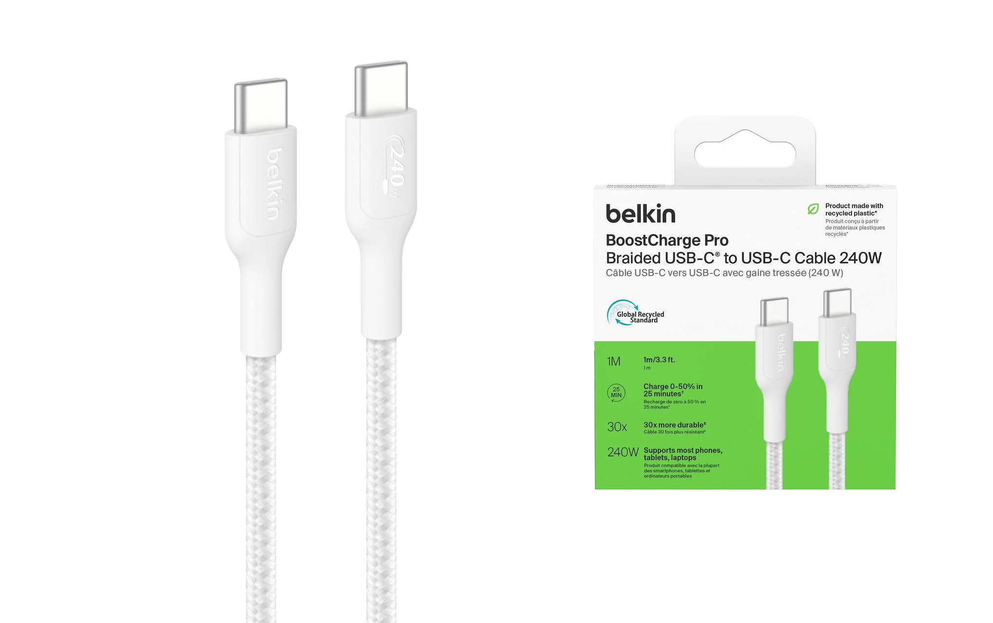 Будьте готові від сьогодні і до завтра. Кабель Belkin розроблений для розширеного діапазону потужності, сумісний з останніми рекомендаціями USB-IF для пристроїв USB 240 Вт і PD 3.1. Заряджати новітні MacBook, Chromebook, ігрові ноутбуки, iPad та інші потужні пристрої USB-C за допомогою міцного кабелю, який забезпечує безпечну та оптимальну швидкість заряджання.