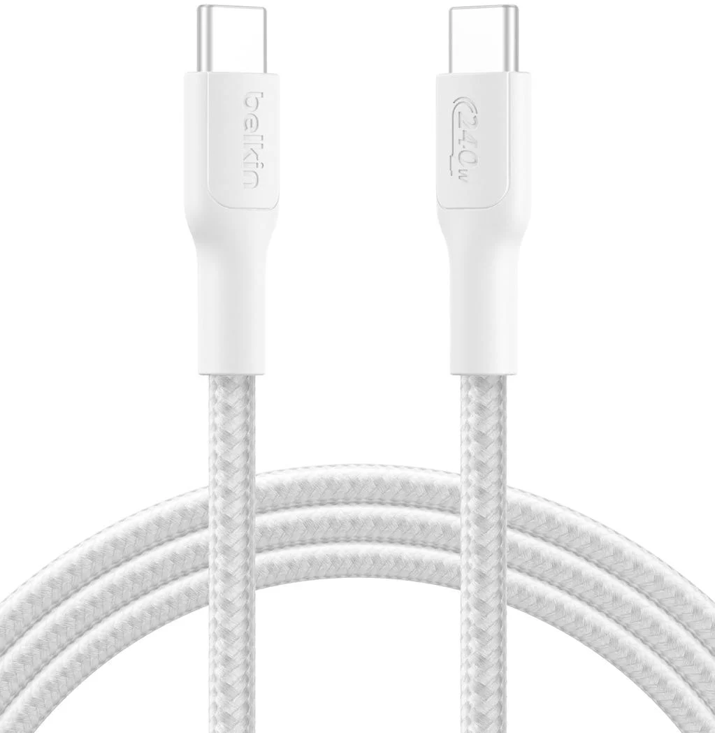 Кабель USB-C > USB-C заряджання/синхронізації Belkin 2м, 240Вт, Type-C, плетений, білий