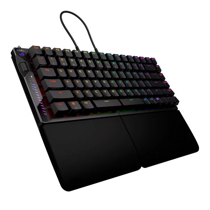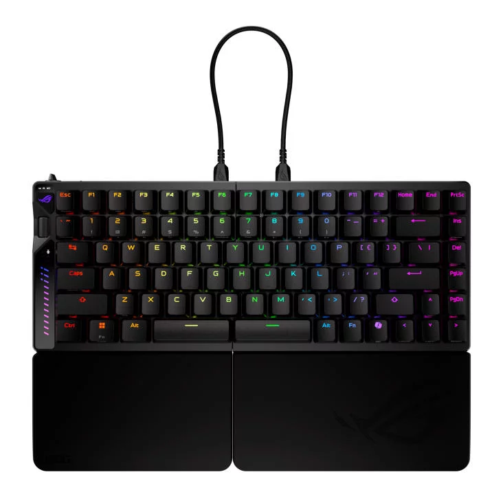 ROG Falcata – це ігрова клавіатура, що піклується про ваш комфорт, адже її компактний формфактор "75%" та унікальна конструкція з можливістю розділення на дві частини забезпечують неперевершену ергономіку й точність керування. Вона оснащена магнітними перемикачами ROG HFX V2 із підтримкою гарячої заміни та сенсором ROG Hall Sensor для миттєвого реагування на кожне натискання клавіш.