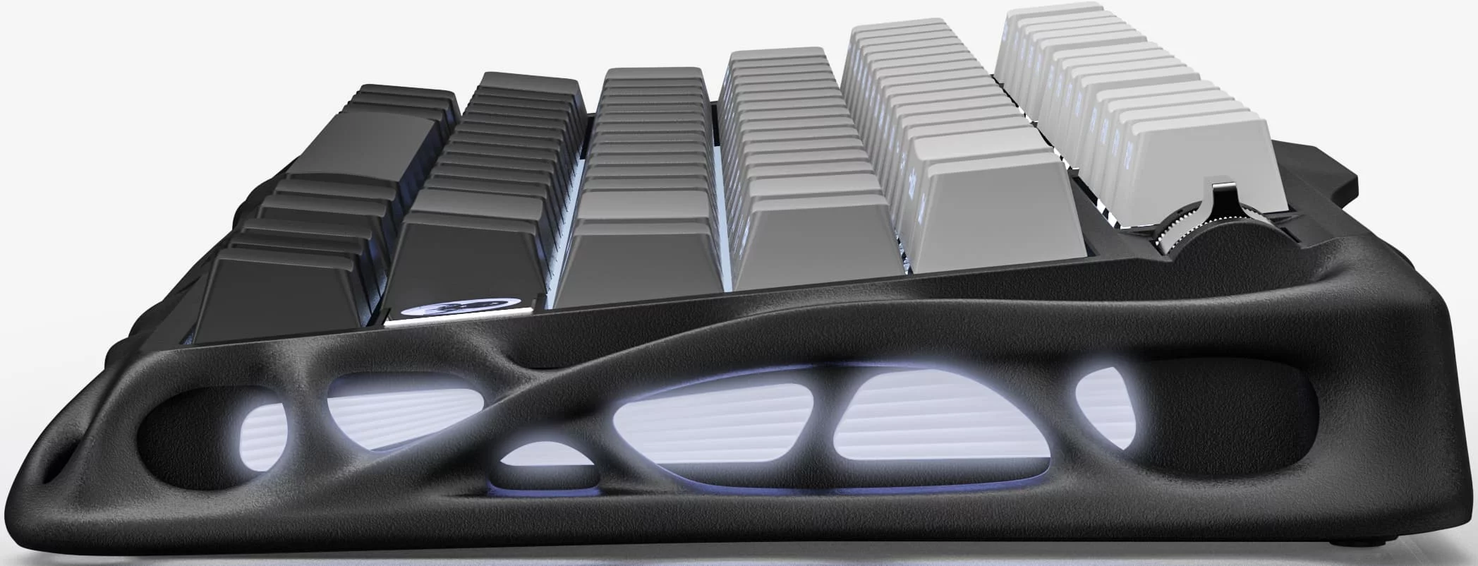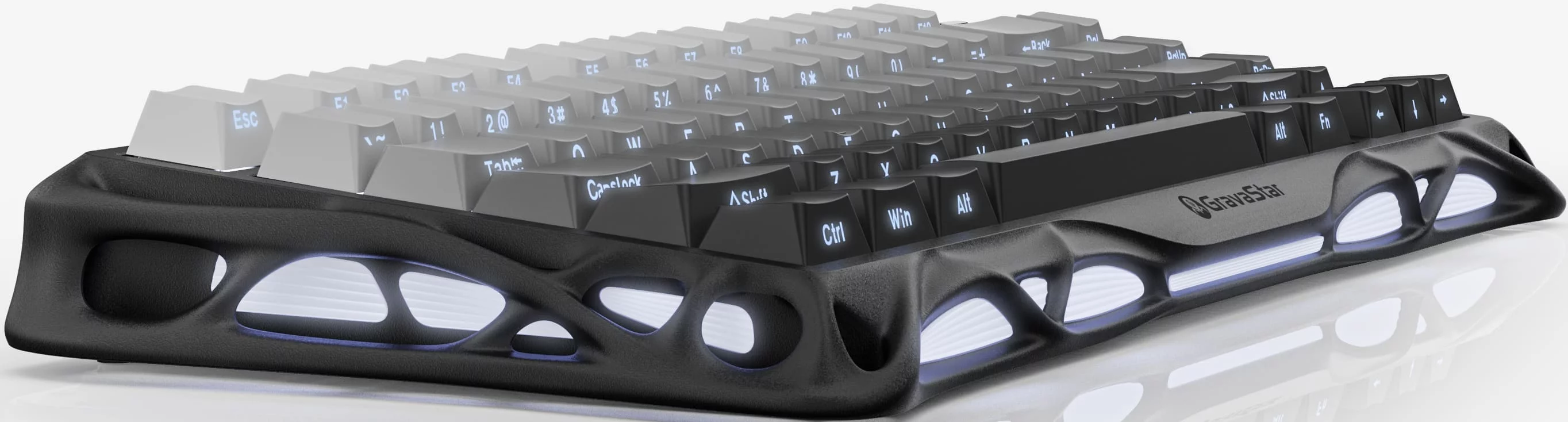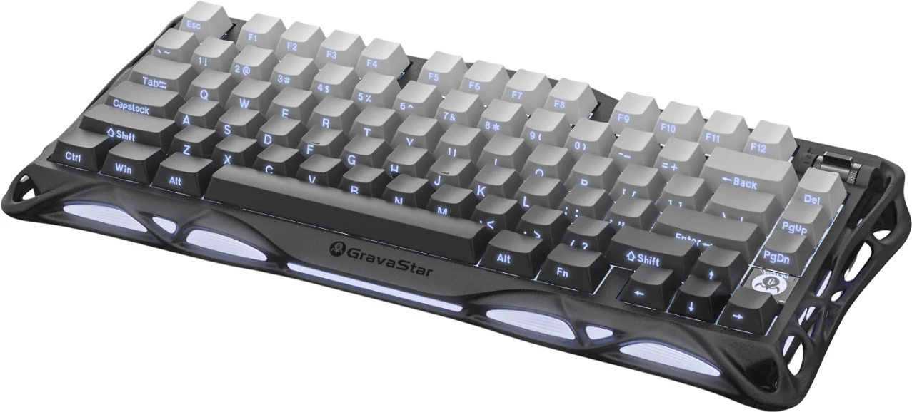 GravaStar Mercury K1 у чорному кольорі – це стильна механічна клавіатура з розкладкою на 80 клавіш і програмованою ручкою керування. Вона оснащена кастомними лінійними перемикачами GravaStar x Kailh Cherry Pink, які забезпечують плавне натискання та комфортний друк. Завдяки акумулятору на 8000 мАг і трьом режимам підключення – USB-C, Bluetooth та 2.4 ГГц – клавіатура дарує свободу використання.