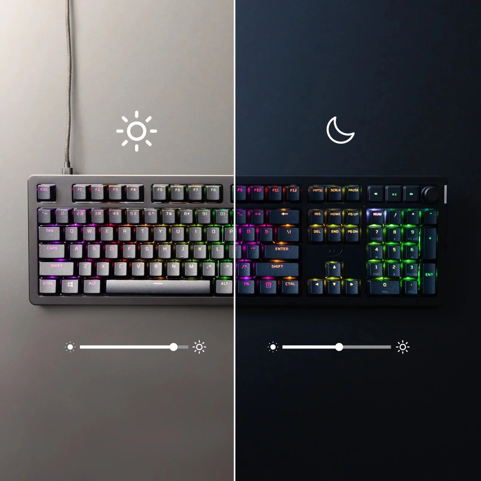 HyperX Alloy Rise 106 — це механічна клавіатура, створена для геймерів, які шукають універсальність та комфорт. Завдяки можливості гарячої заміни перемикачів, користувачі можуть легко змінювати клавіші без інструментів, додаючи більше індивідуальності до своєї клавіатури. Магнітні верхні панелі та значки дозволяють персоналізувати зовнішній вигляд, роблячи клавіатуру унікальною. Перемикачі HyperX Red мають лінійний хід і попередньо змащені, що забезпечує плавну і тиху роботу. Ці перемикачі розраховані на 80 мільйонів натискань, що гарантує довговічність. Крім того, клавіатура має датчик освітлення, який автоматично налаштовує яскравість RGB-підсвічування відповідно до умов освітлення навколо вас. Клавіатура підтримує до 10 різних профілів налаштувань, що дозволяє швидко перемикатися між ними залежно від ігрових чи робочих потреб. Завдяки знімному USB-C кабелю і підтримці частоти опитування до 8000 Гц, Alloy Rise 106 гарантує високу швидкість реакції на кожне натискання. Усі ці функції роблять цю клавіатуру ідеальним вибором для геймерів, які цінують персоналізацію та високу продуктивність.
