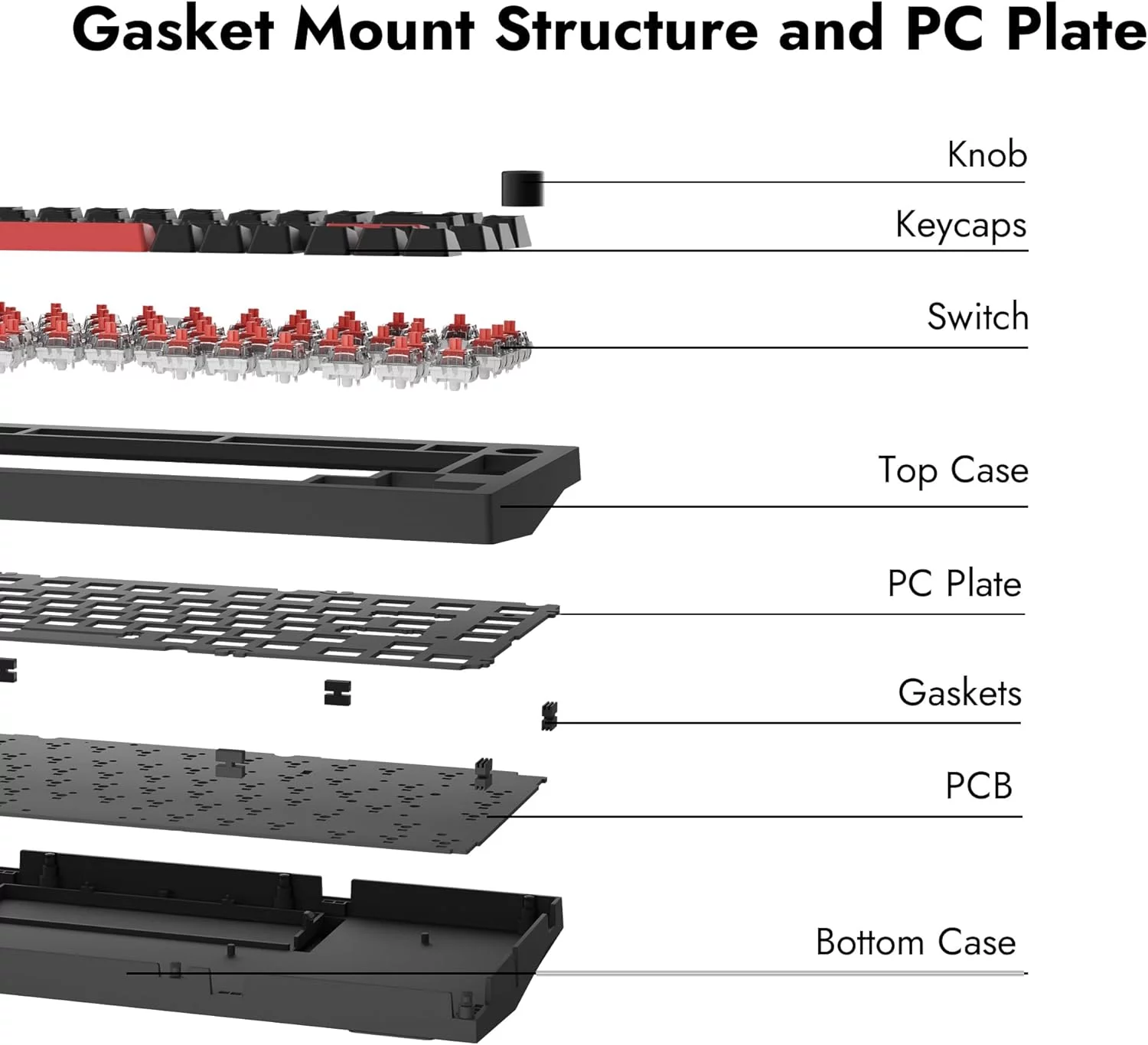 Anti-Ghosting - захист від випадкових натискань, N-key rollover (NKRO), Вигнуті кейкапи OEM-профілю, Гаскетне кріплення, Програмування за допомогою QMK та VIA, Світлопроникні подвійні ABS-кейкапи OEM-профілю, Три рівні регулювання кута нахилу (4º, 8º та 10º)
