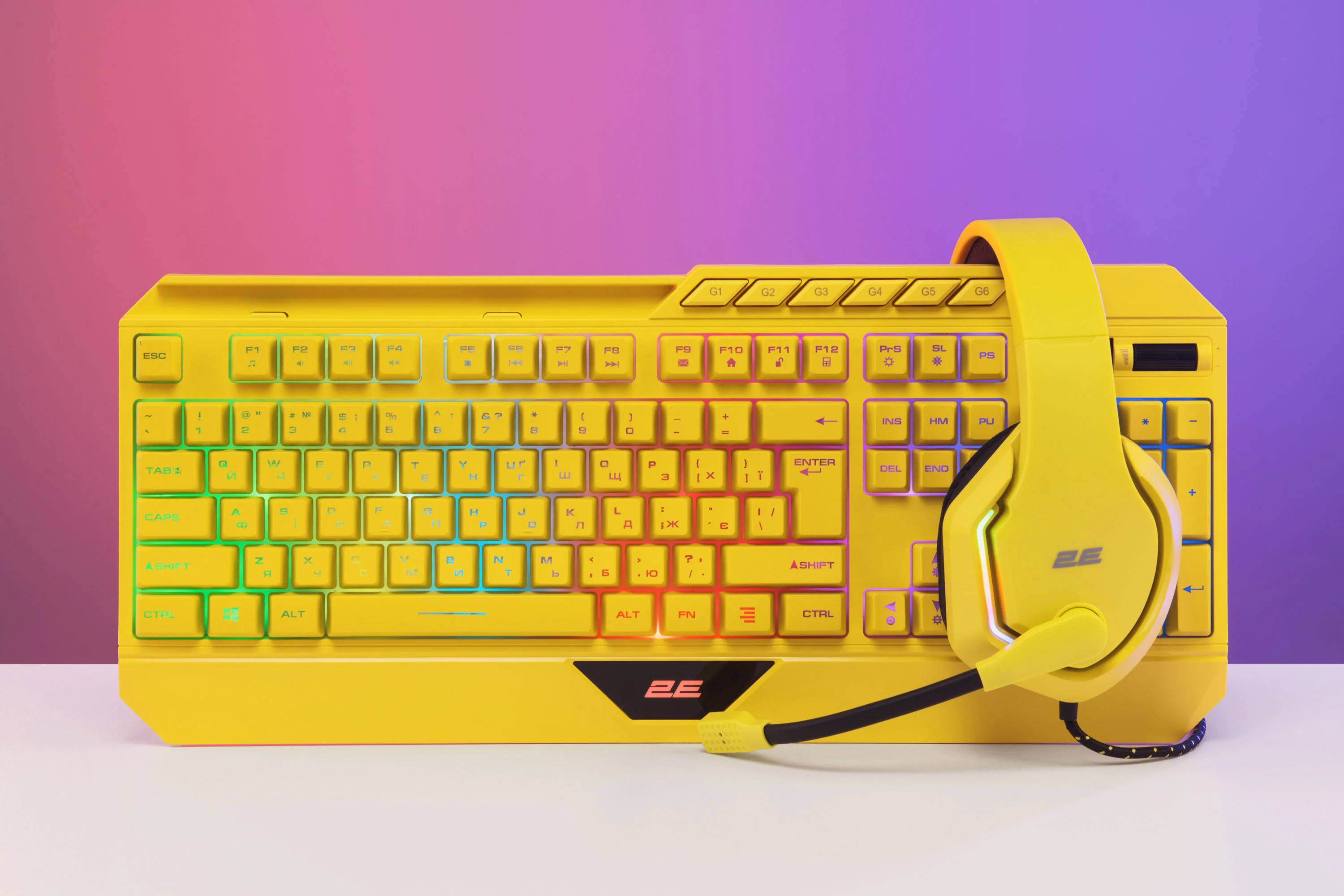 2E GAMING KG315 – мембранна ігрова клавітуара, у якій вдало поєднано яскравий дизайн і широкий функціонал. Повнорозмірна модель оснащена RGB-платою й підтримує 11 різноманітних сценаріїв підсвічування з можливістю тонкого налаштування швидкості зміни і яскравості кольорів. Окрім 104 основних клавіш, KG315 має 6 додаткових програмованих макрокнопок (G1-G6), а завдяки потужному ПЗ є змога значно розширити базовий функціонал. Міцною й водночас ергономічною конструкцією передбачено тримач для смартфона чи планшета, що зумовлює зручність використання.