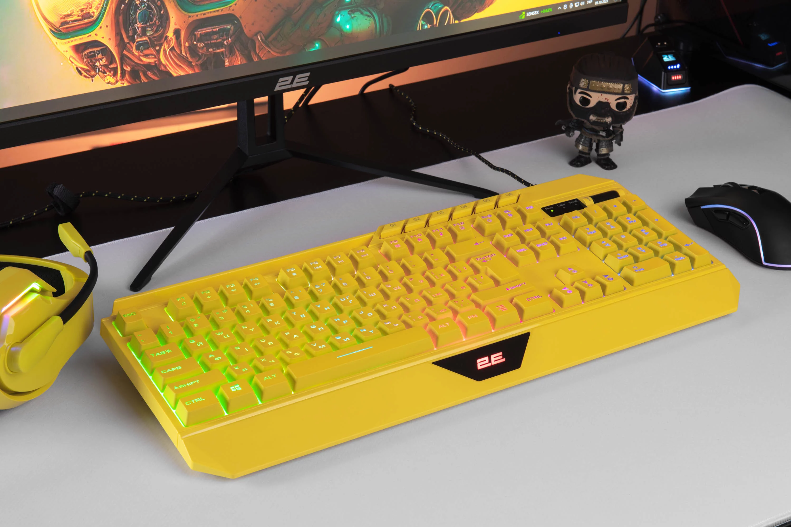 життєвий цикл клавіш: 10 мільйонів натискань, Повністю прогумовані ніжки - відмінна стійкість, регулювання висоти, регулювання швидкості підсвічування, регулювання яскравості підсвічування, Регулятор гучності, тримач смартфона, планшета, Фірмове ПЗ