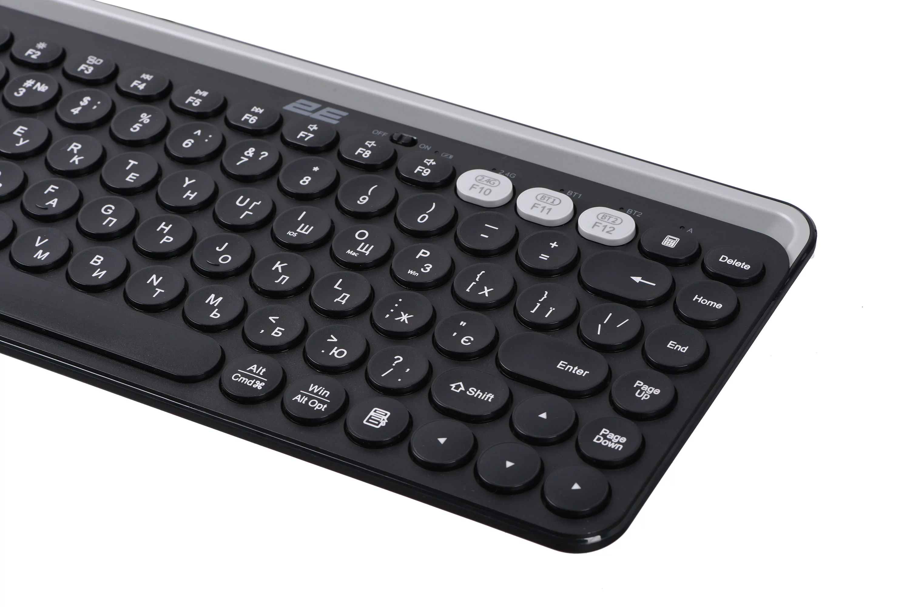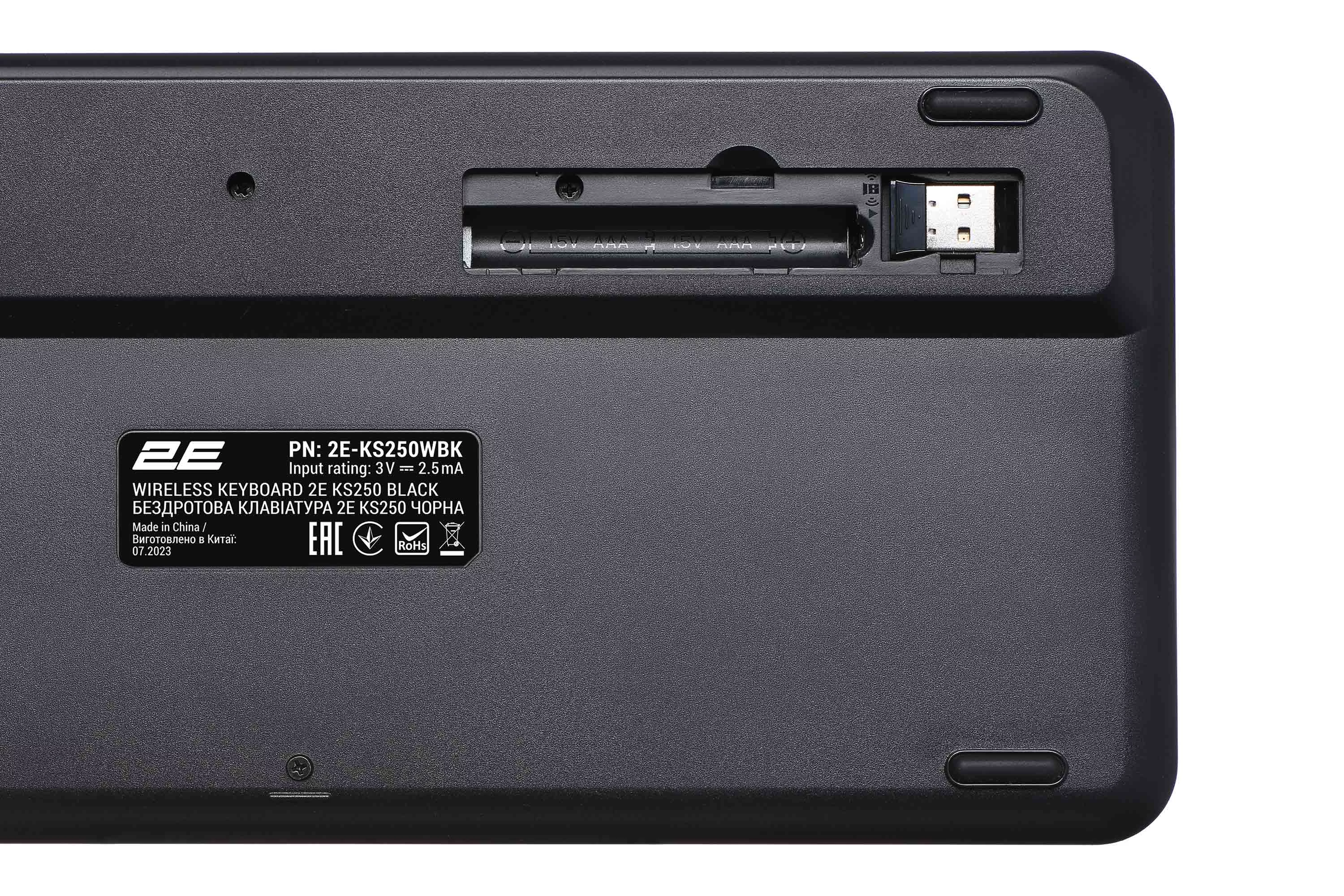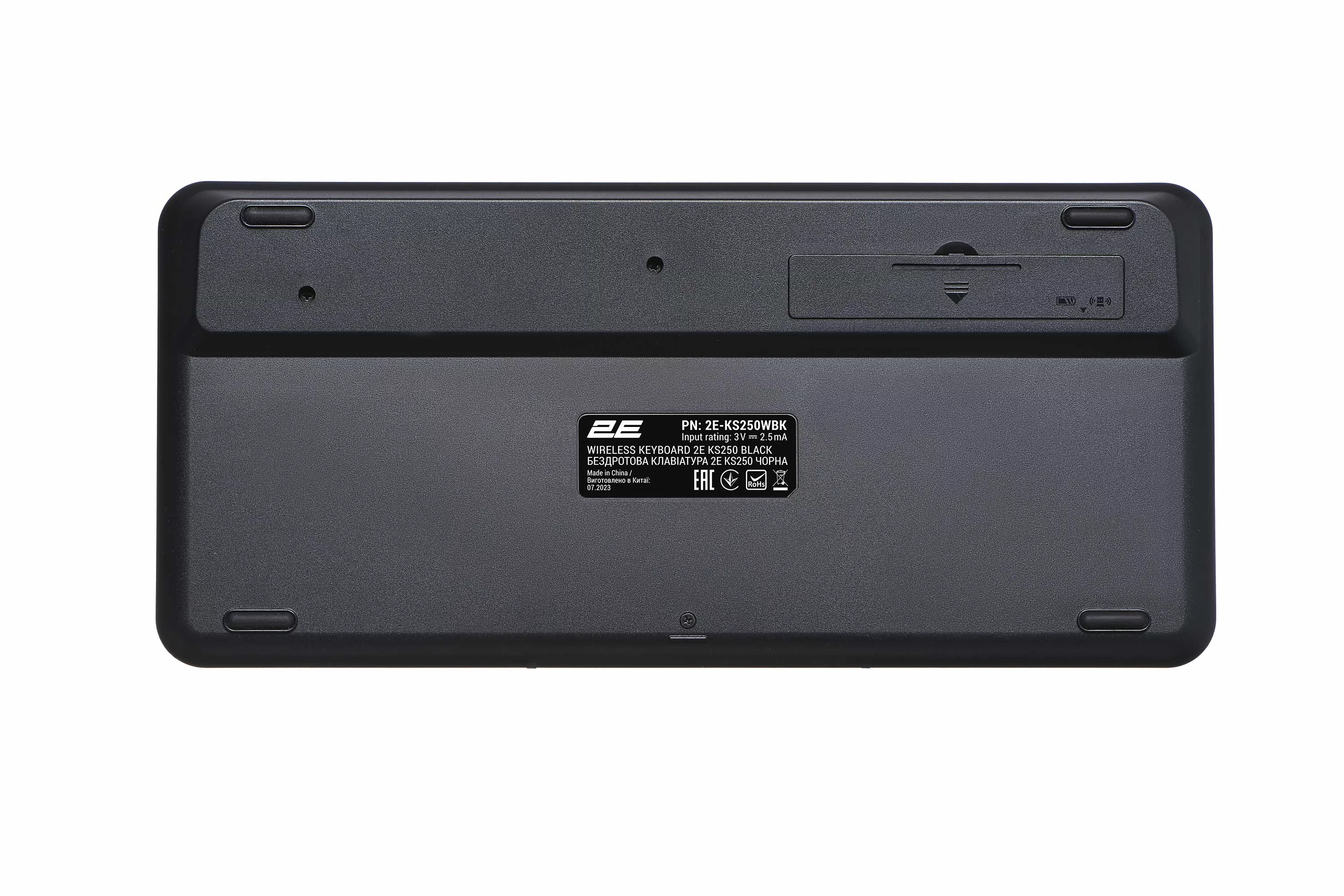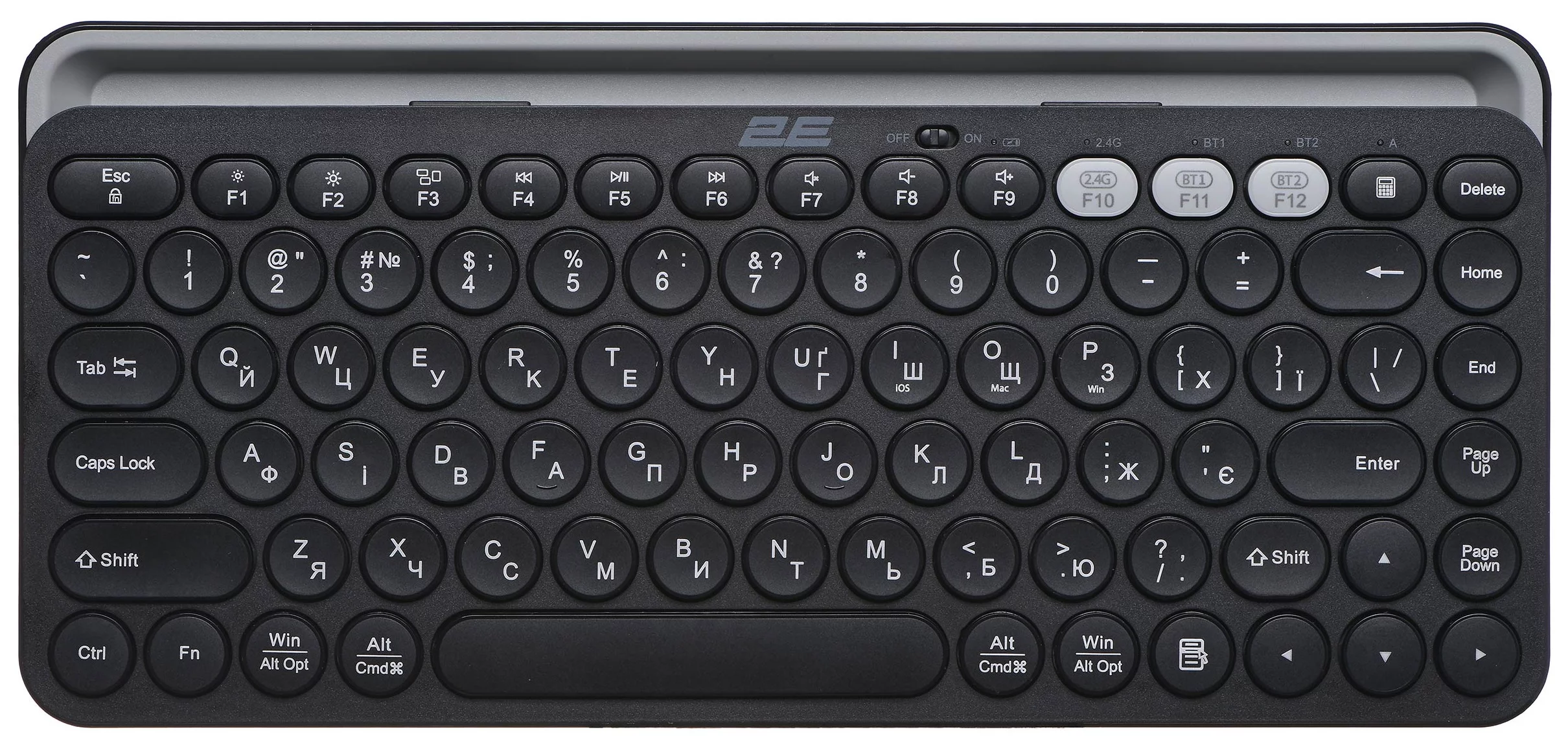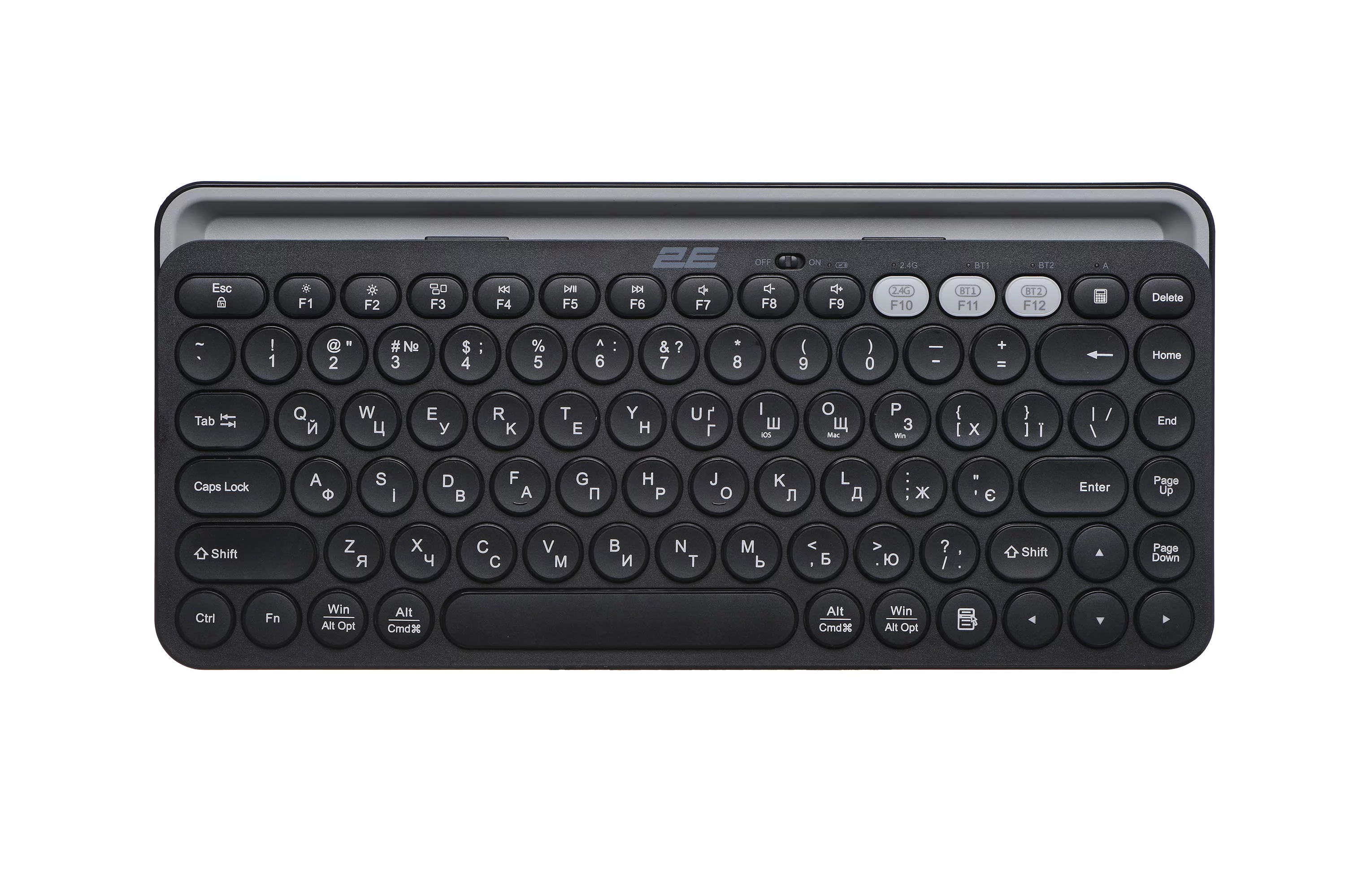 Бездротова клавіатура 2E KS250 WL BT є оптимальним вибором для користувачів, для яких головними критеріями є зручність та ефективність. Однозонна модель виготовлена з міцного ABS-пластику, конструкцією передбачена виїмка з прогумованим покриттям для встановлення планшета або телефона. Причин перейматися щодо стійкості немає, адже клавіатура важить 799,4 г, тож точно «втримає» під’єднаний девайс.