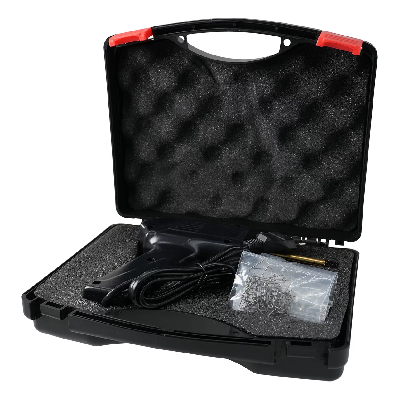 G.I.KRAFT CBRM70AC — це універсальний комплект для швидкого та надійного ремонту пластикових деталей кузова, бамперів, кріплень, панелей тощо. Оснащений зручним паяльником потужністю 70 Вт, набір дозволяє ефективно з'єднувати або зміцнювати пошкоджені пластикові елементи за допомогою спеціальних металевих скоб.