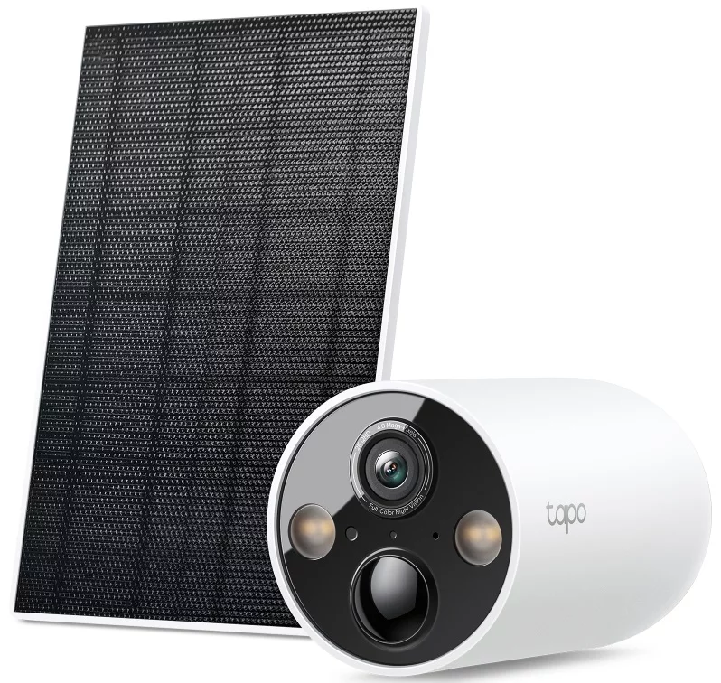 Комплект TP-LINK Tapo C425 KIT складається з бездротової камери відеоспостереження з роздільною здатністю 2K QHD та сонячної панелі для безперервного живлення. Камера підтримує кольорове нічне бачення, розумне AI-розпізнавання, двосторонній звук і має захист IP65, що гарантує стабільний нагляд без постійної підзарядки.