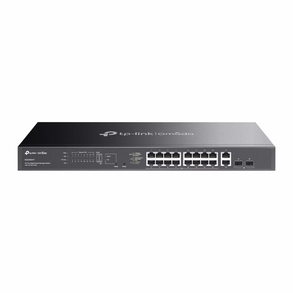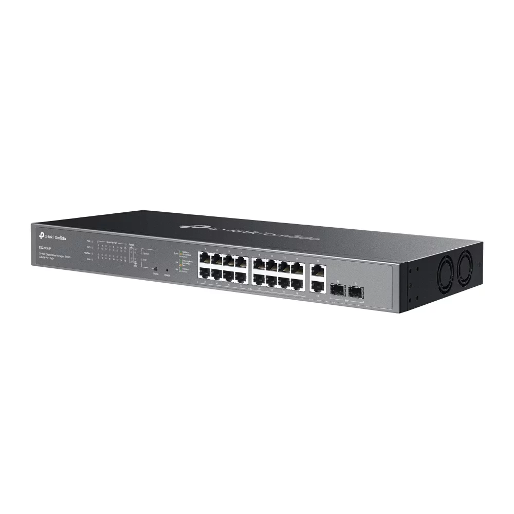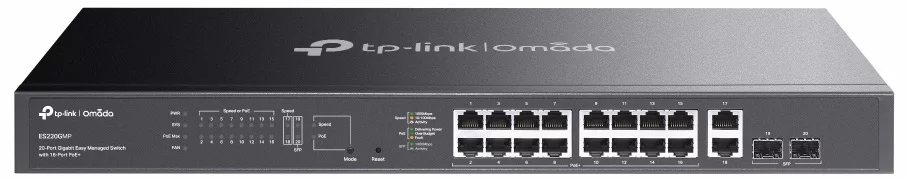 TP-LINK ES220GMP – це 20-портовий гігабітний комутатор з 16 PoE+ портами (загальний бюджет 250 Вт) та 2 SFP-слотами. Підтримує централізоване керування через Omada, розширений PoE до 250 м, автоматичне відновлення та ізоляцію портів. Металевий корпус, монтаж у стійку, функції QoS, VLAN та IGMP Snooping забезпечують стабільну й безпечну роботу мережі.