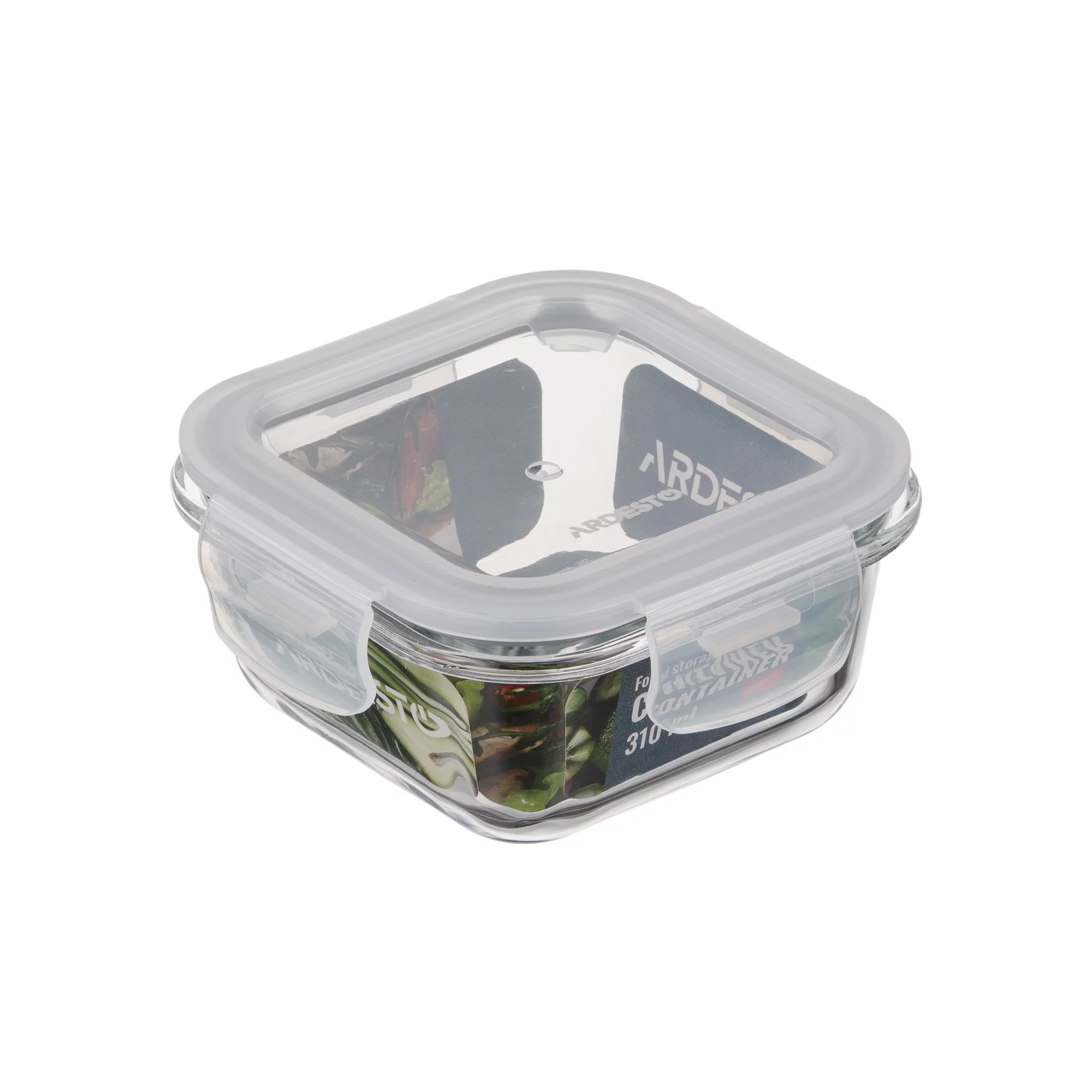 Контейнер об’ємом 0,3 л виготовлено з екологічного боросилікатного скла, яке не вбирає запахів, зберігаючи аромат і смак продуктів, та гарантує довговічність виробу. Пластикова кришка забезпечує герметичність. Завдяки термостійкості виробу його можна залишати в морозильній камері, холодильнику, використовувати для підігрівання страв в мікрохвильовій печі або приготування в духовій шафі (без кришки). Розмір ємності – 11,8 × 11,8 × 6,8 см. Контейнер прозорий – це допомагає ідентифікувати продукти. Виріб можна мити в посудомийній машині. У контейнері зручно як зберігати страви або продукти вдома, так і брати з собою в офіс чи в подорож.