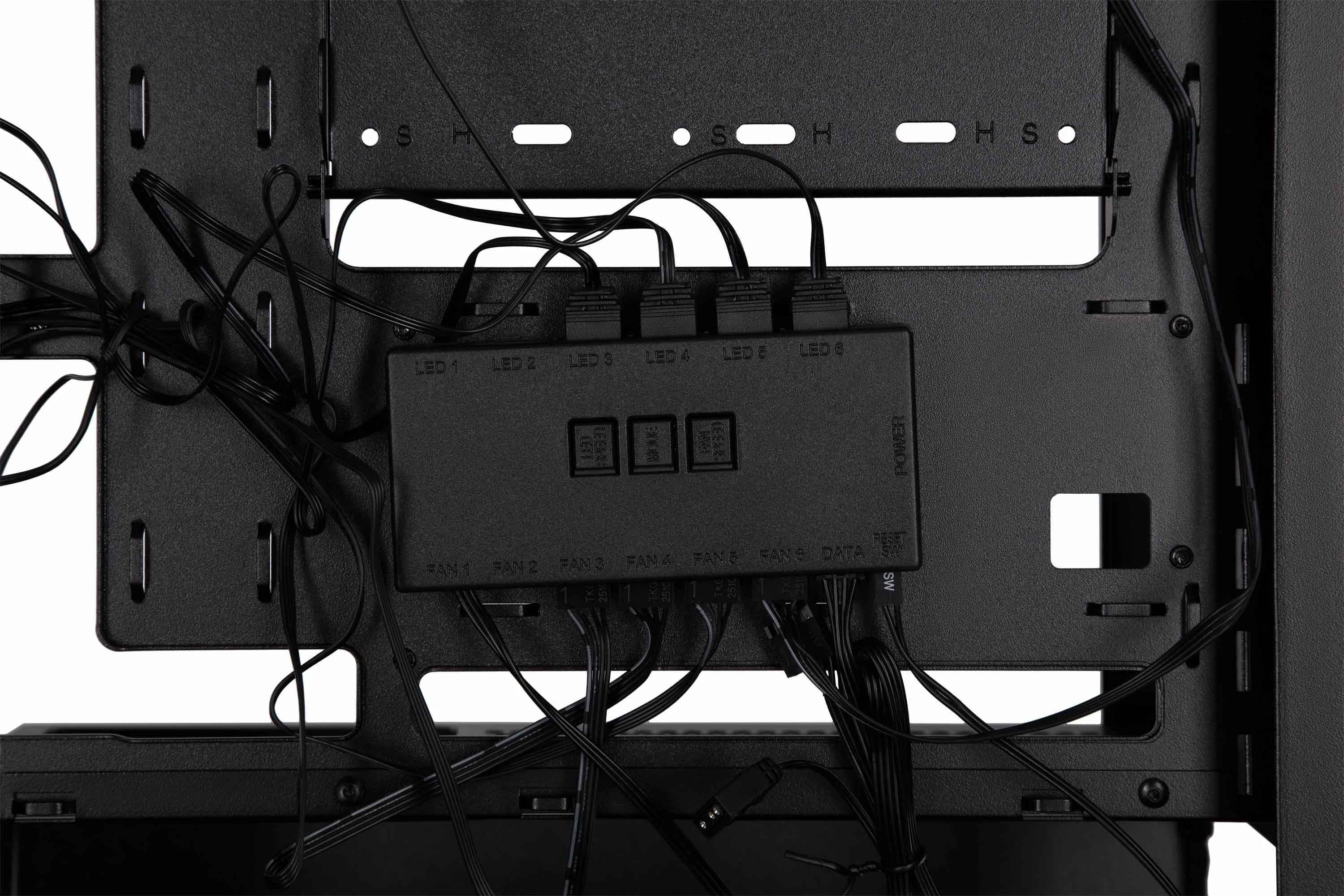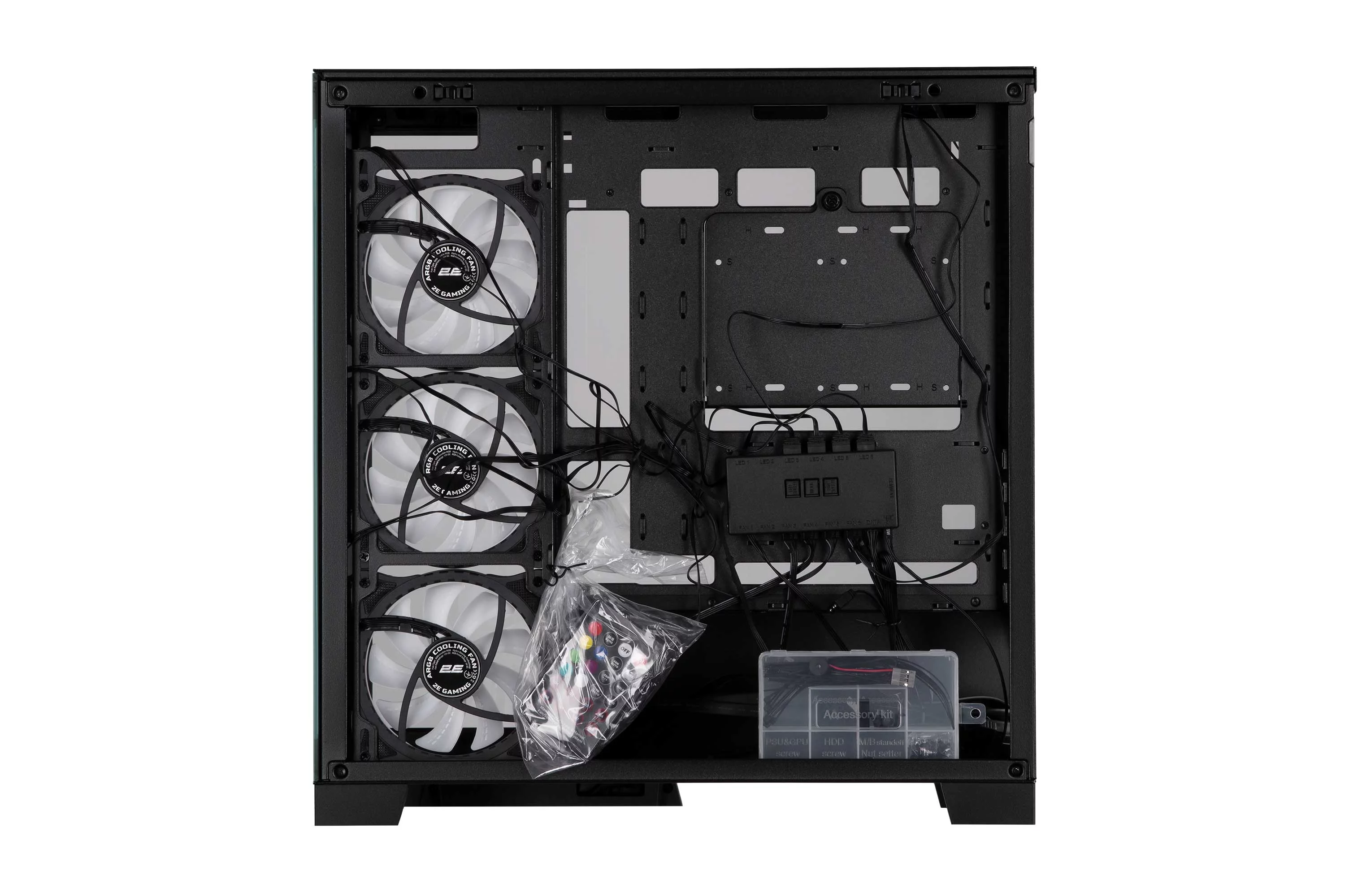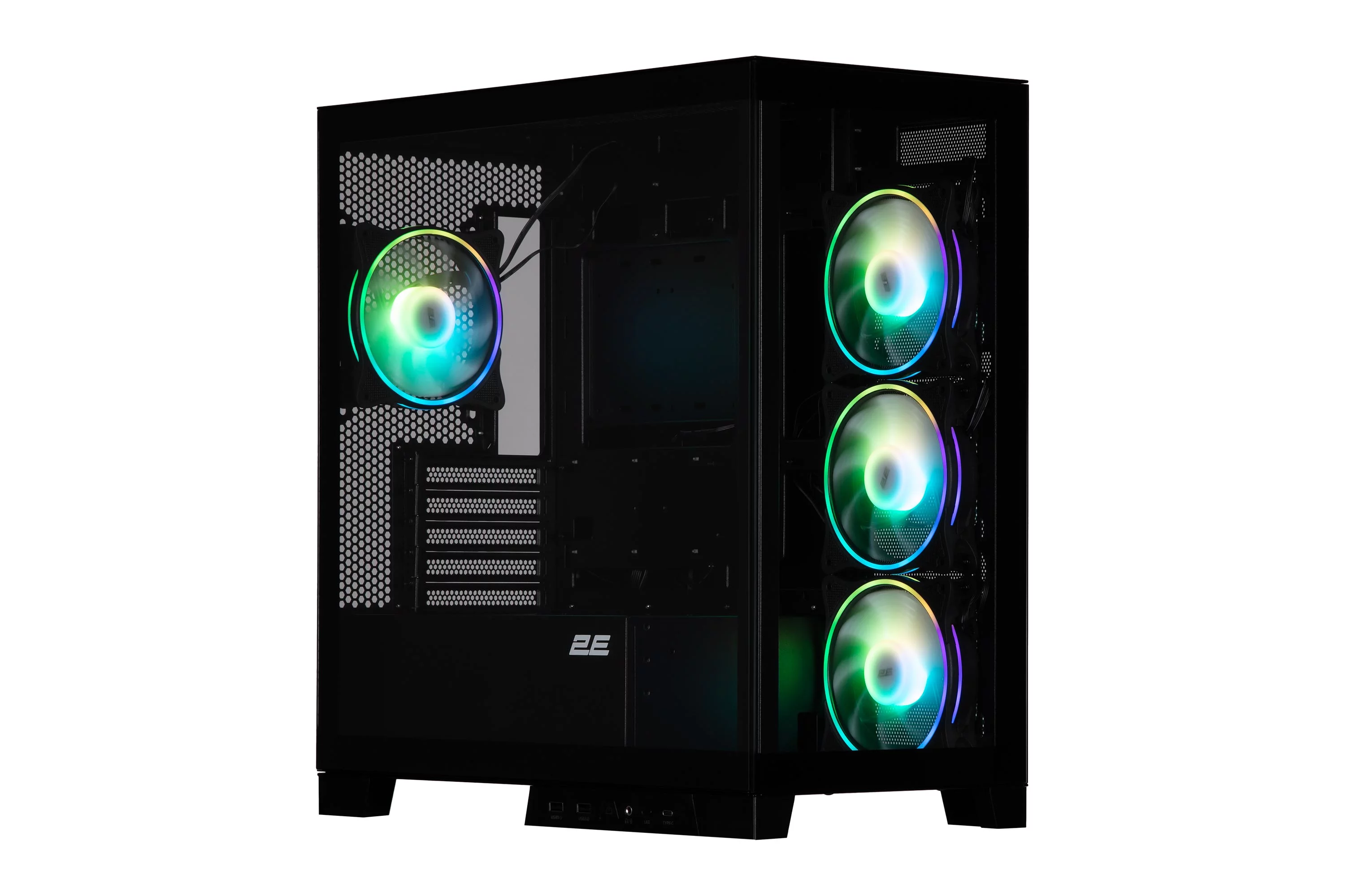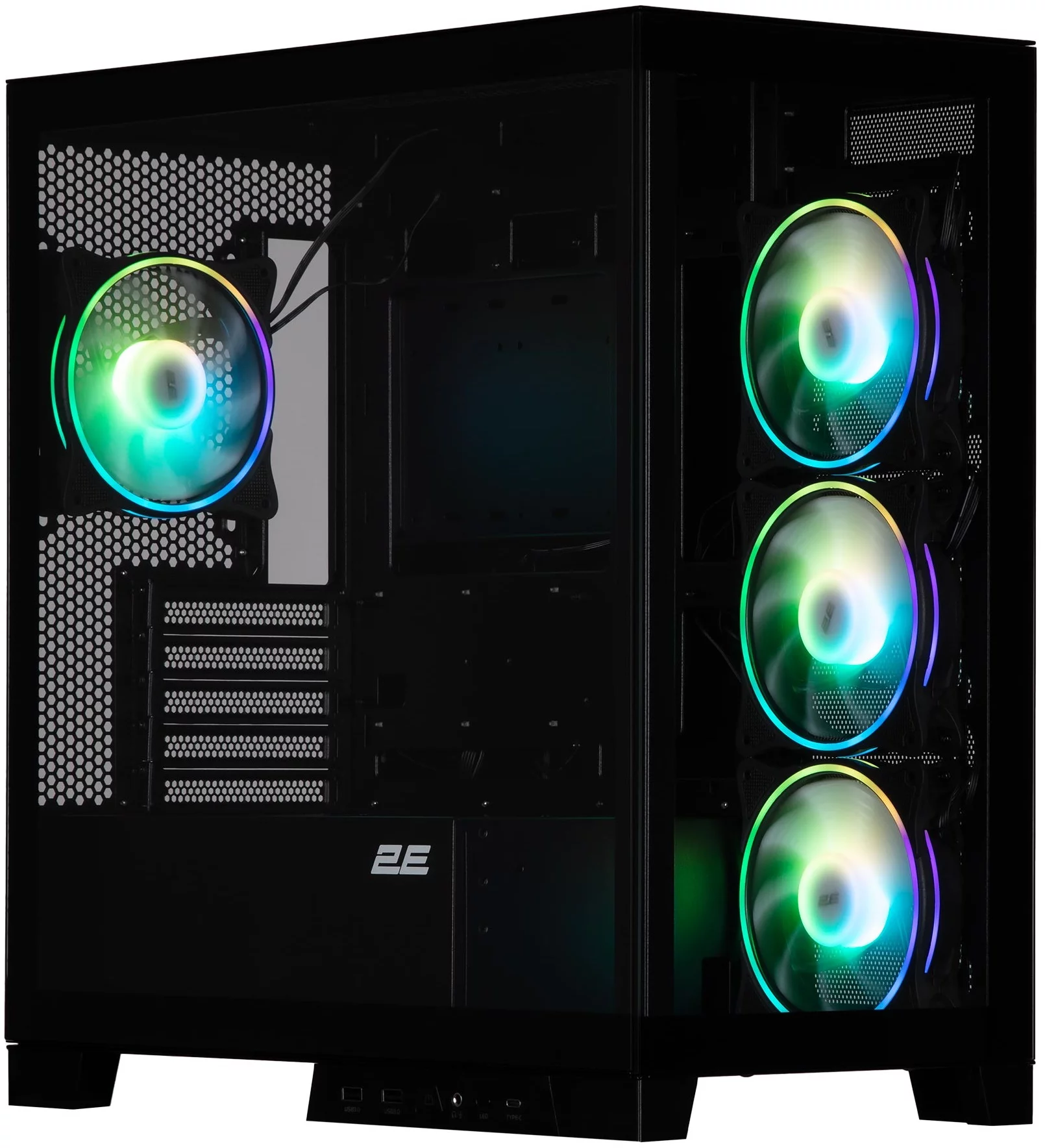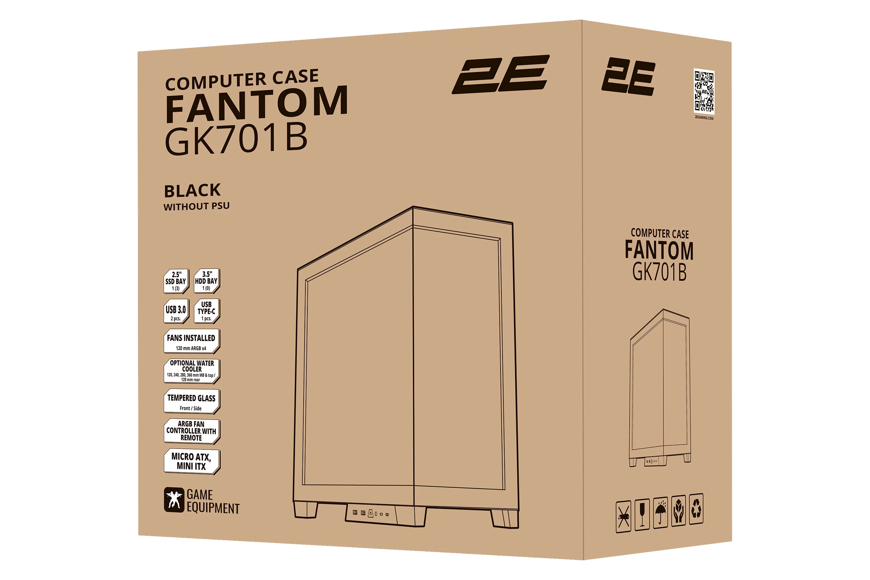 Корпус 2E GAMING Fantom GK701B, компактний корпус з металу і загартованого скла. Відмінно підходить для створення прозорої комп'ютерної системи з акцентом на підсвічені деталі компонентів. В комплекті: 4 вбудованих 120мм ARGB PWM вентилятора (на внутрішній панелі поруч з материнською платою і на задній панелі), контролер і дистанційний пульт для управління.