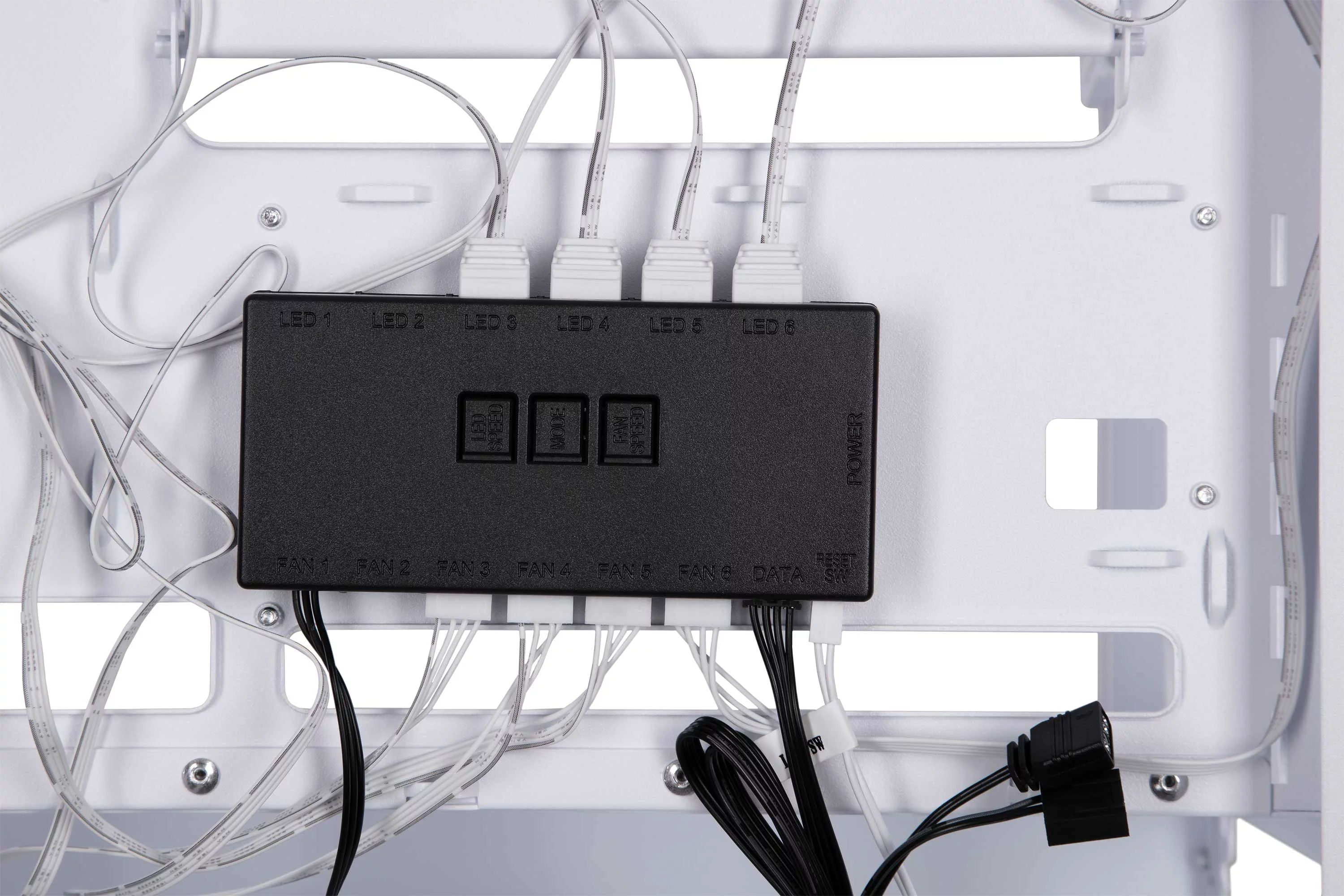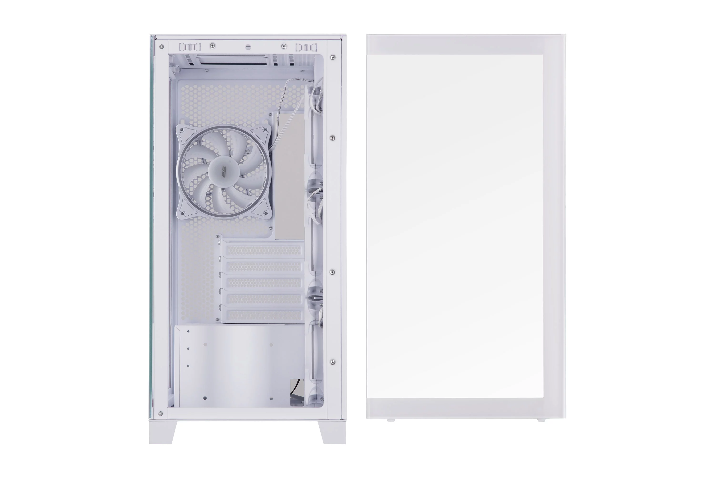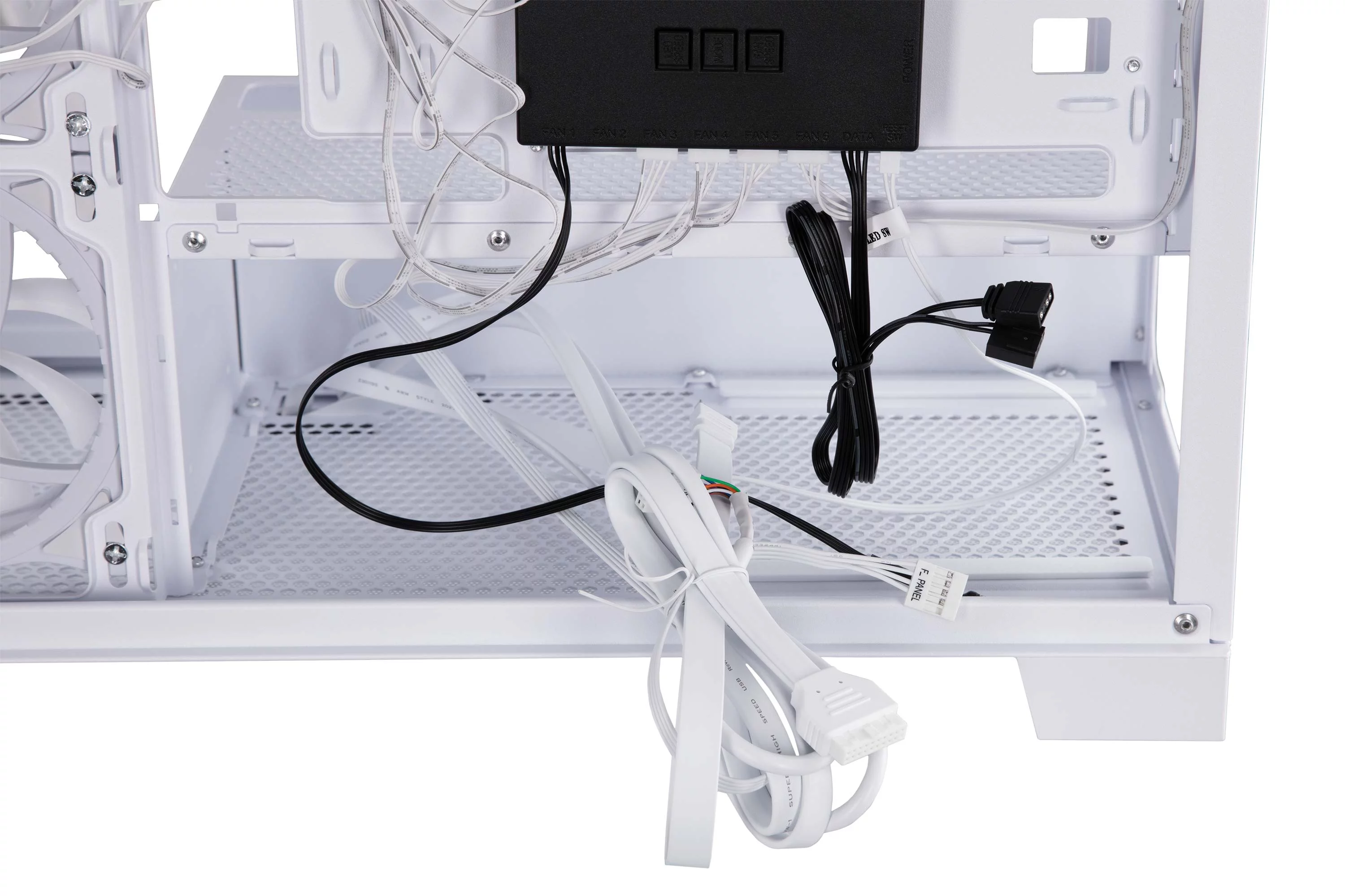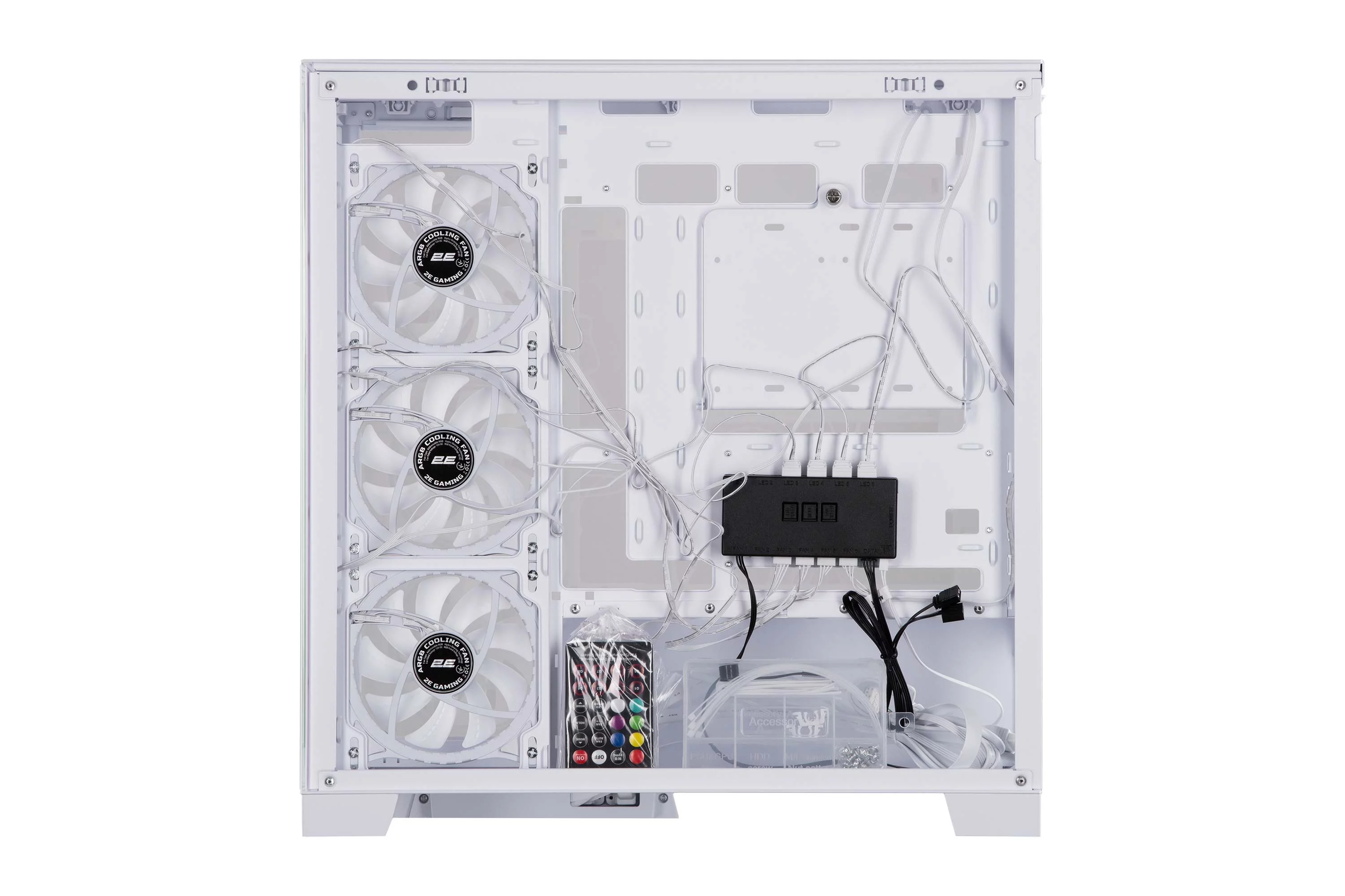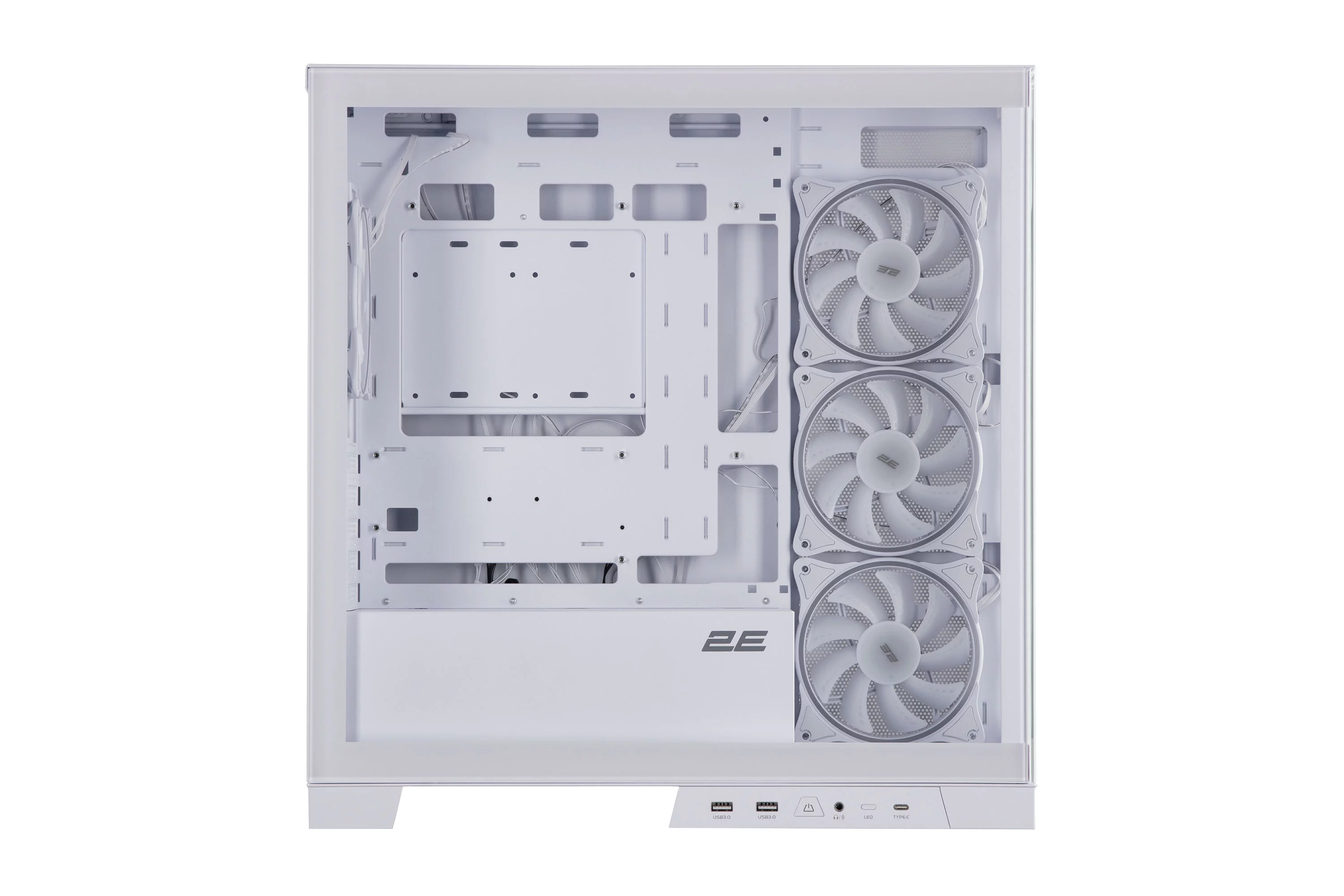 Корпус 2E GAMING Fantom GK701W, компактний корпус з металу і загартованого скла. Відмінно підходить для створення прозорої комп'ютерної системи з акцентом на підсвічені деталі компонентів. В комплекті: 4 вбудованих 120мм ARGB PWM вентилятора (на внутрішній панелі поруч з материнською платою і на задній панелі), контролер і дистанційний пульт для управління.