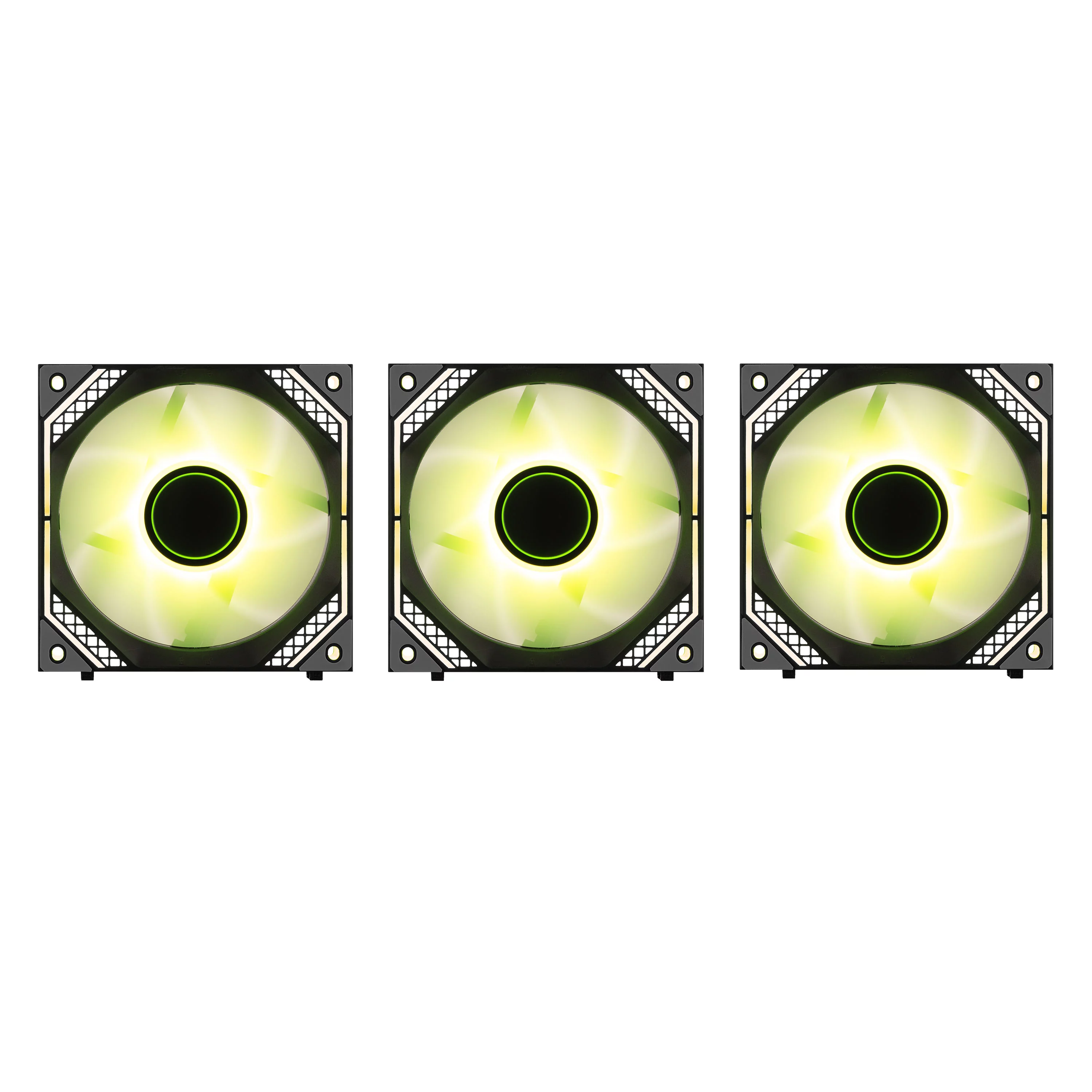 Комплект із трьох 120мм ARGB вентиляторів із послідовним підключенням 2E GAMING Air Cool Magic Mirror (2E-ACF120MB-ARGB) із чорною декоративною, міцною рамкою.