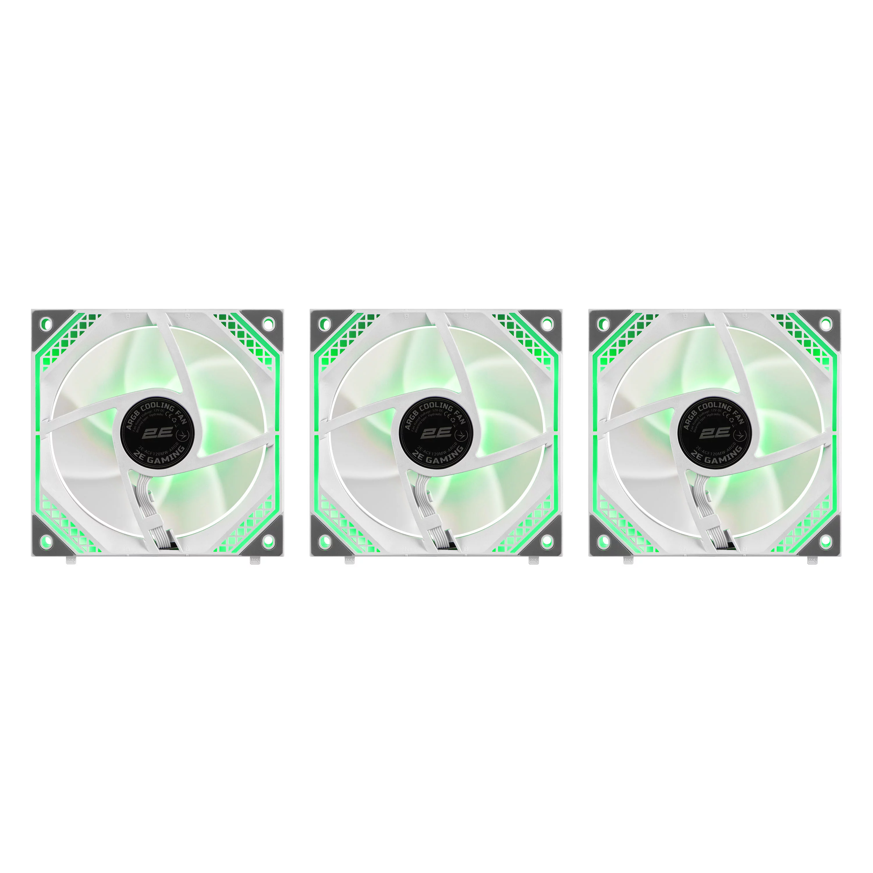 Комплект із трьох 120мм ARGB вентиляторів із послідовним підключенням 2E GAMING Air Cool Magic Mirror (2E-ACF120MW-ARGB) із білою декоративною, міцною рамкою.