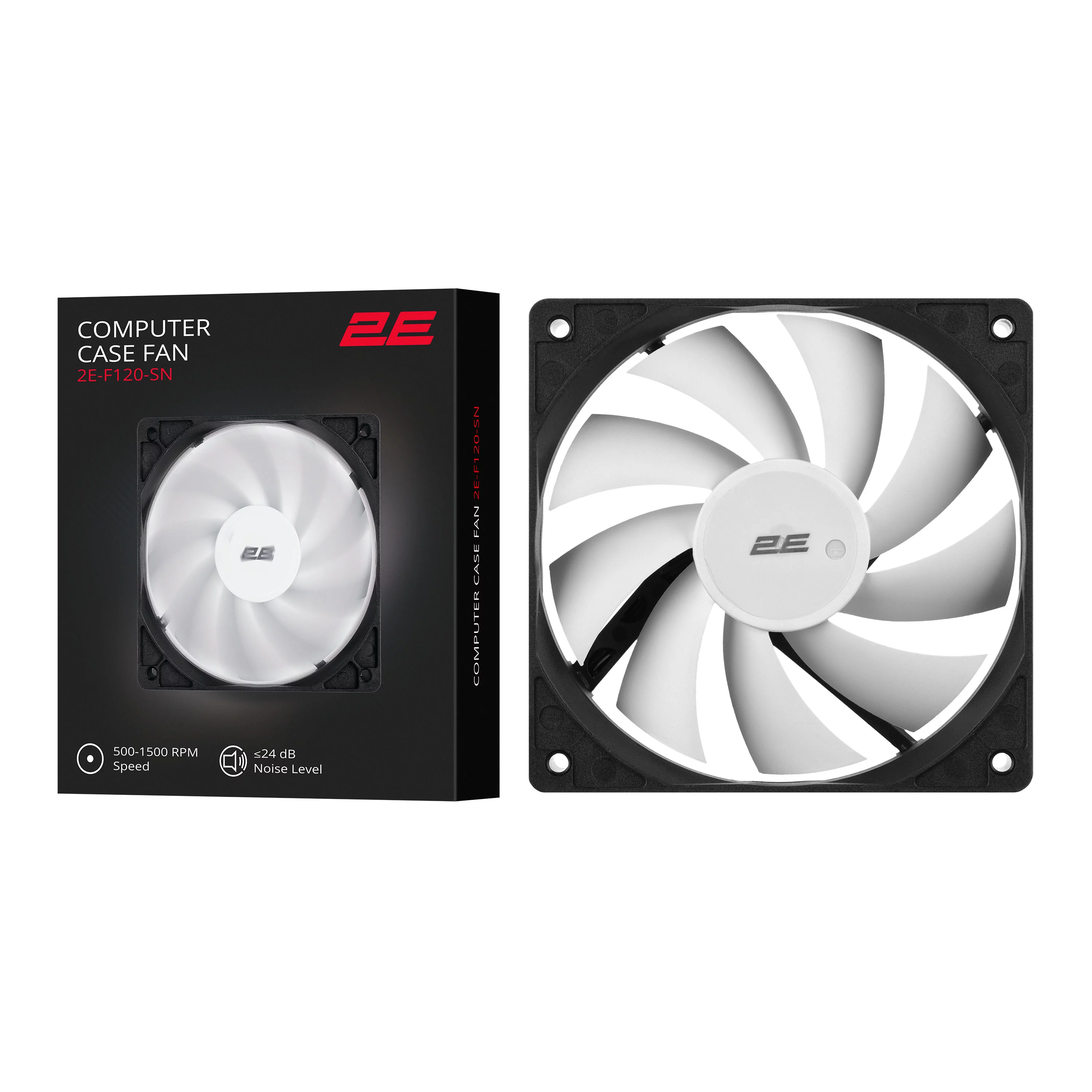 Корпусний вентилятор 2E-F120-SN PWM - класичний 120мм вентилятор (4pin) з білими лопатями. Вентилятор на гідродинамічному підшипнику працює тихо при максимальній частоті оборотів 500-1500 об/хв. Дев'ять лопатей з оптимальною формою для ефективної роботи на вдув та видування. Термін служби: ≥40 000 (годин) безперервної роботи. Упаковка для роздрібного продажу, в комплекті чотири гвинти для кріплення та інструкція користувача.