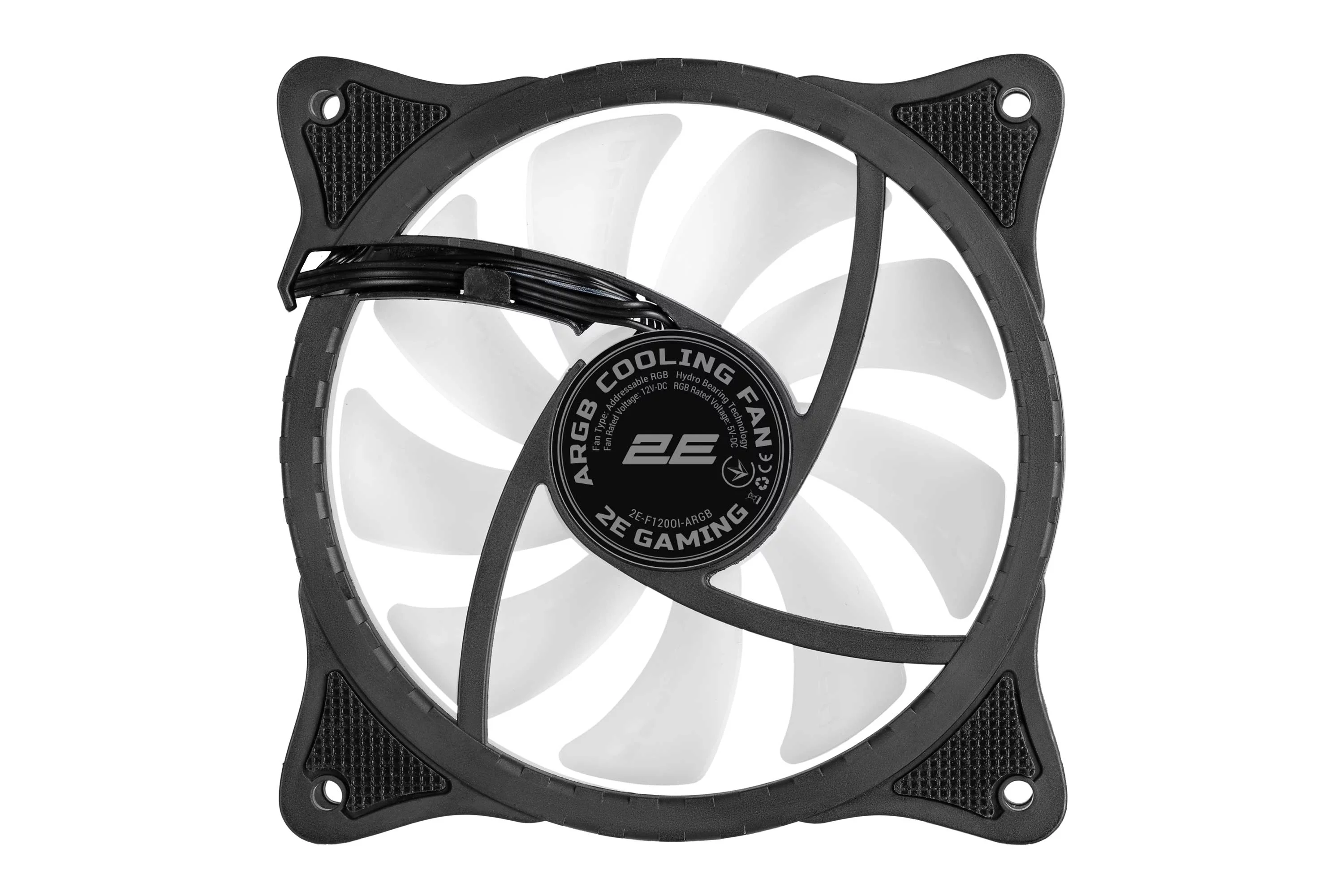 2E Gaming F120OI-ARGB – класичний 120мм вентилятор 2510-4PIN/+ 5V 3PIN RGB з білими лопатями та керованим RGB підсвічуванням. З чотирьох сторін розміщені антивібраційні накладки. Сучасний матеріал накладок – силікон не деформується при нагріванні, гасить вібрацію, еластичний та витривалий до різного роду навантажень. Вентилятор на підшипнику ковзання, працює тихо при максимальній частоті обертів 1200±10% об/хв. ARGB підсвічення розподіллено по внутрішній частини вентилятора та по контуру рамки.