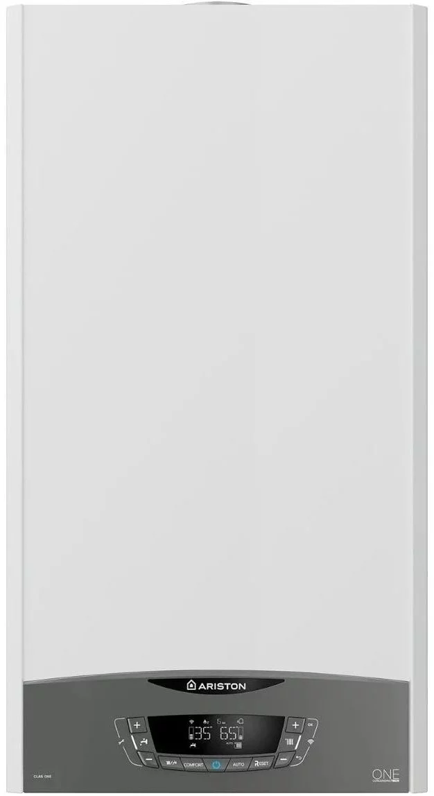 Газовий конденсаційний котел Ariston CLAS ONE WIFI 24 потужністю 24 кВт забезпечує ефективне опалення та гаряче водопостачання для будинку. Оснащений вбудованим Wi-Fi-модулем, двоконтурною системою та сучасною технологією конденсації для економії енергії.