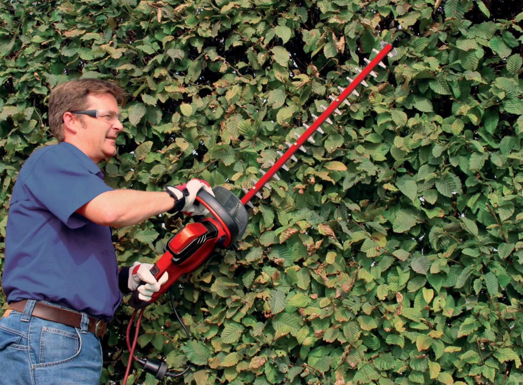 Електричний кущоріз Einhell GE-EH 6560 на 650 Вт для швидкої та точної обрізки живоплотів і кущів. Довжина різання 600 мм, частота до 3000 різів за хвилину та крок між зубами 30 мм забезпечують чистий зріз і високу продуктивність. Лазерно-вирізані й алмазно-шліфовані ножі працюють у парі з металевим редуктором для довговічності. Додаткова передня ручка і поворотна задня рукоятка з Softgrip покращують контроль та знижують втому.