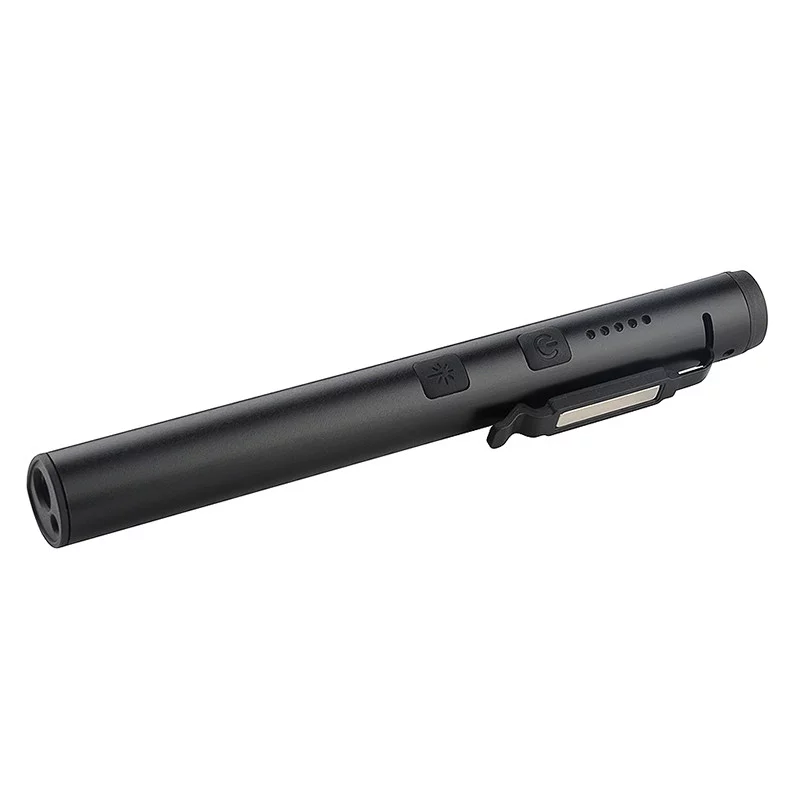 - Магнітний та поворотний сталевий зажим — надійне кріплення до металевих поверхонь, дозволяє встановити ліхтарик у зручному положенні для роботи без участі рук.