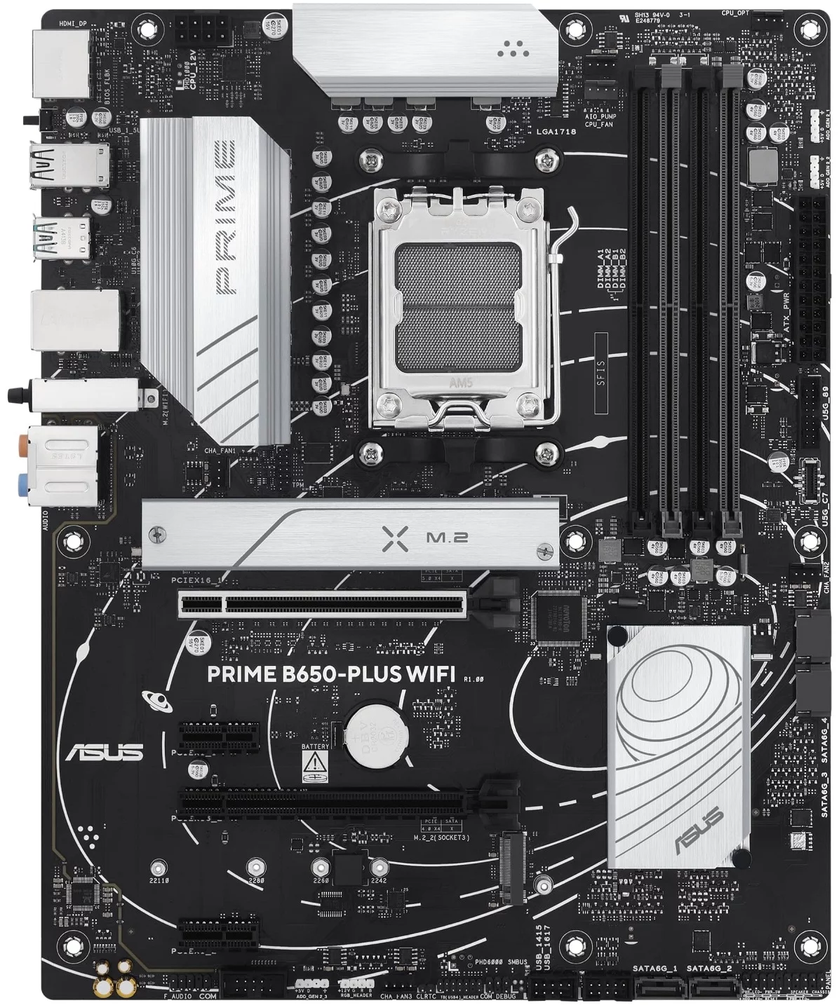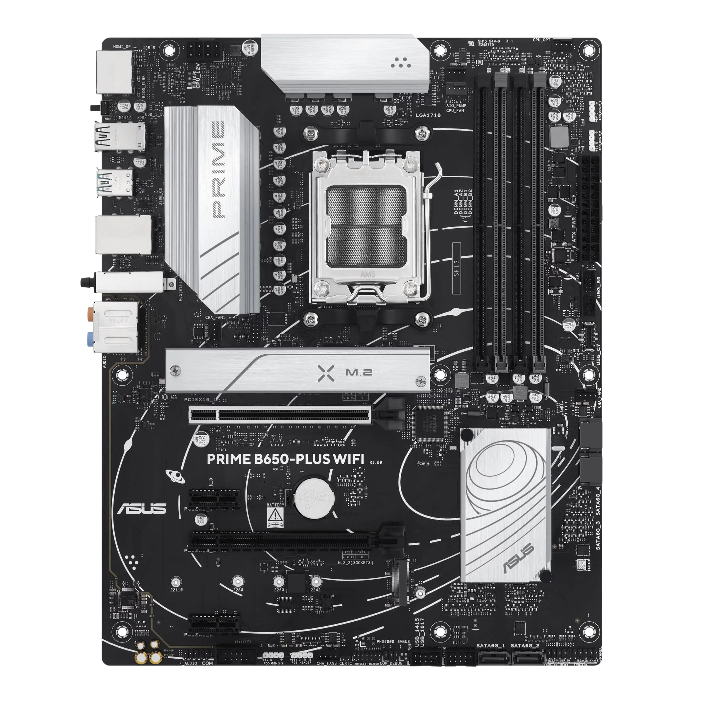 Материнські плати ASUS серії Prime майстерно розроблені для розкриття повного потенціалу процесорів AMD Ryzen серій 9000, 8000 і 7000. Завдяки надійній конструкції, комплексним рішенням для охолодження та інтелектуальним можливостям налаштування, PRIME B650-PLUS WIFI надає користувачам і майстрам, які збирають комп'ютери своїми руками, широкий спектр можливостей для оптимізації продуктивності завдяки інтуїтивно зрозумілому програмному забезпеченню та вбудованому програмному забезпеченню. Ця платформа забезпечує потужність і зв'язок, яких вимагають сучасні комп'ютерні програми зі штучним інтелектом.