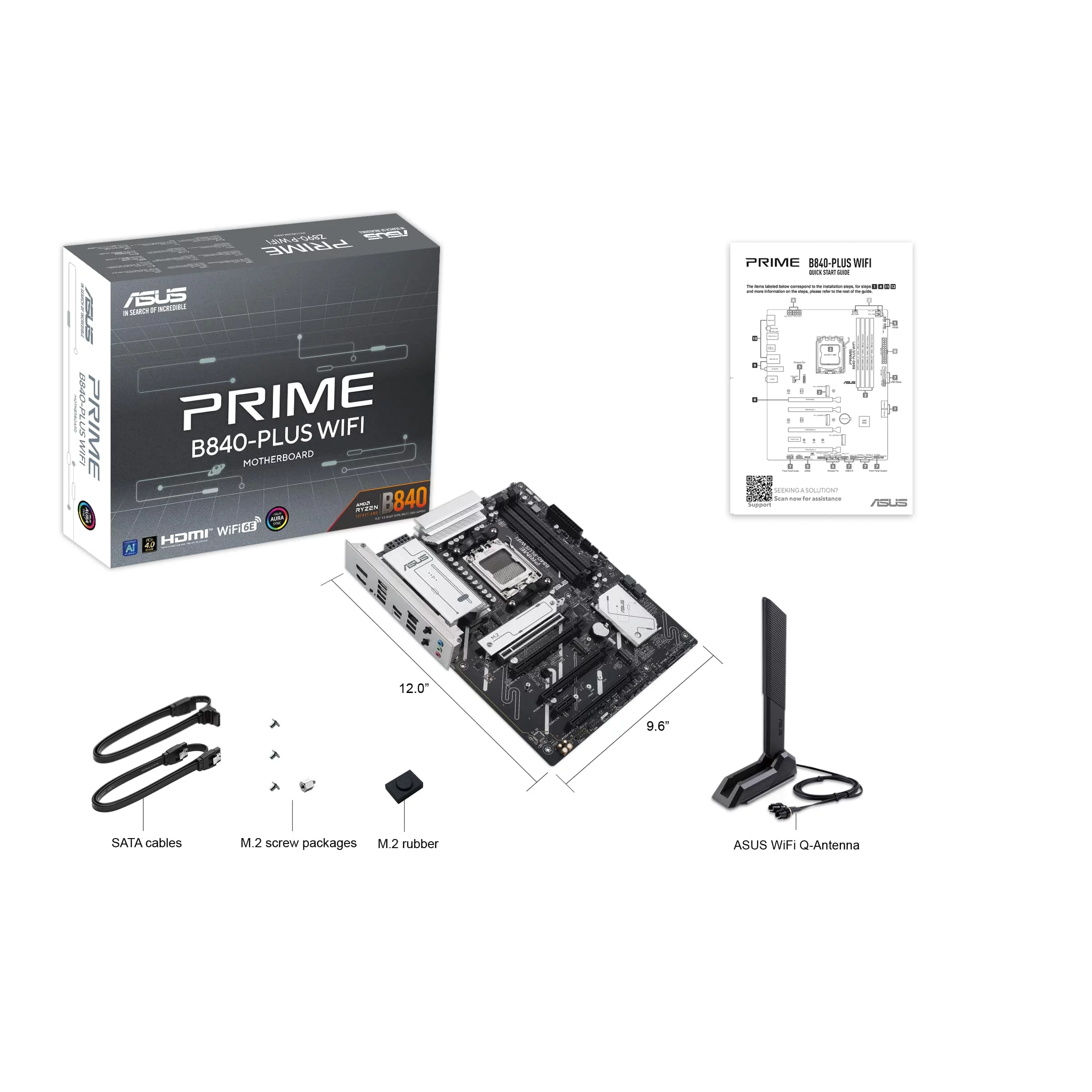ASUS WiFi Q-Antenna, M.2 Rubber Package, M.2 Screw Package, Quick start guide, SATA Cable