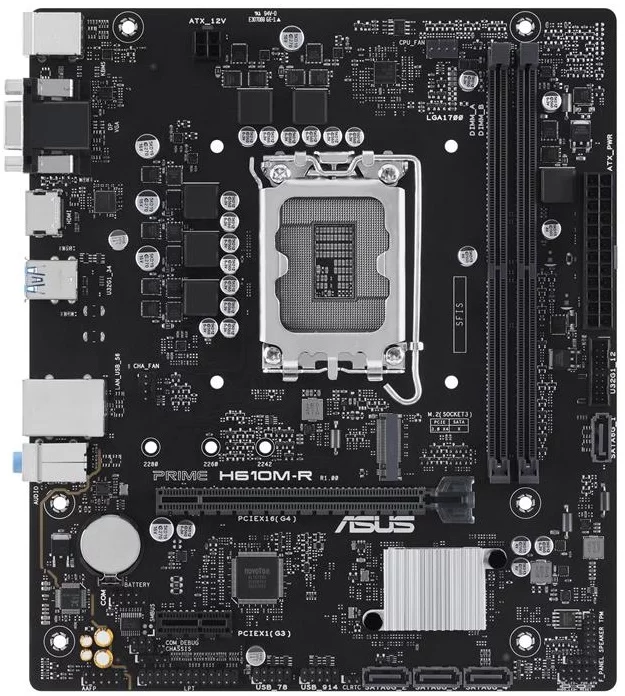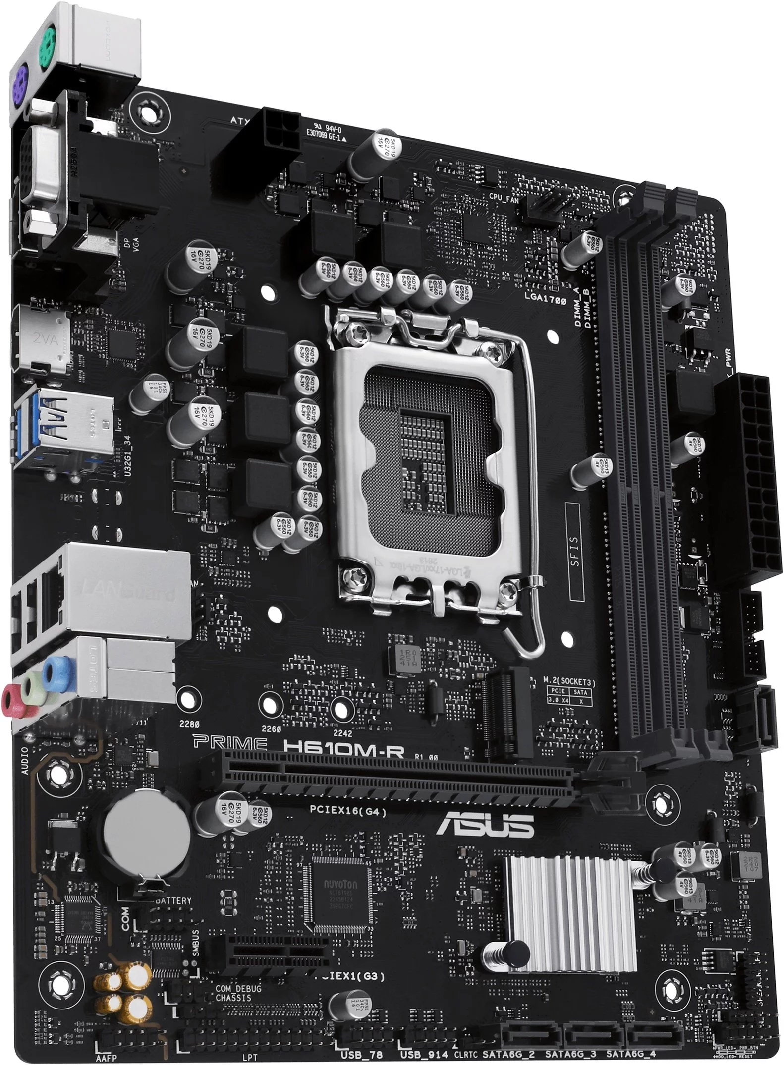 Материнська плата PRIME H610M-R-SI s1700 H610 - це компактна материнська плата формату mATX, спроектована для процесорів Intel (s1700) і обладнана чималою функціональністю. Ця материнська плата PRIME H610M-R-SI від ASUS є надійним і функціональним рішенням для вашого комп'ютера.