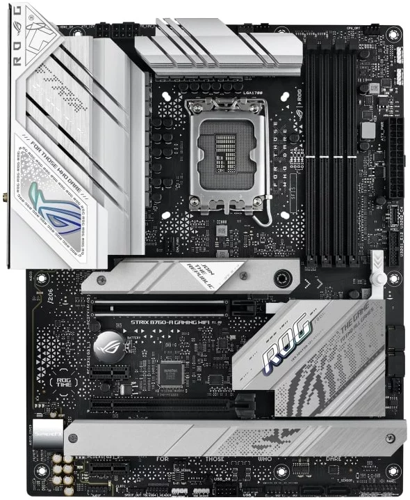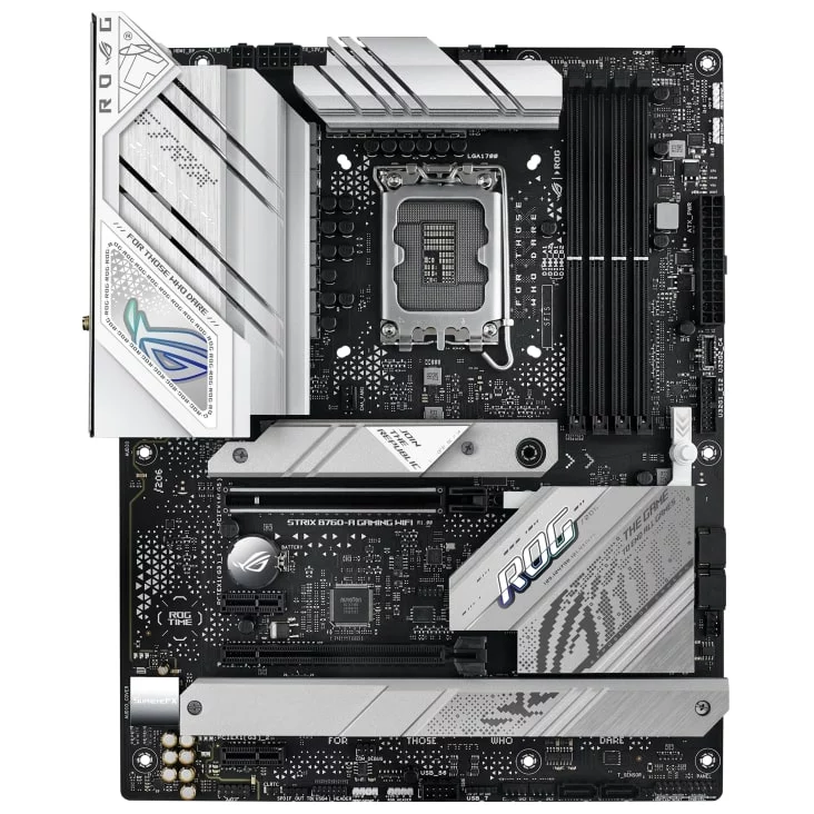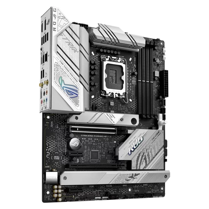 Як і його грізний побратим, ROG Strix B760-A Gaming WiFi - це яскраве втілення новітньої платформи Intel з інтерфейсами PCIE 5.0, USB 3.2 GEN 2x2 і натхненними кібернетичними мотивами ROG на висококонтрастному тлі. Але цей варіант оснащений пам'яттю DDR5, що забезпечує ще більшу пропускну здатність для ігор і додатків.