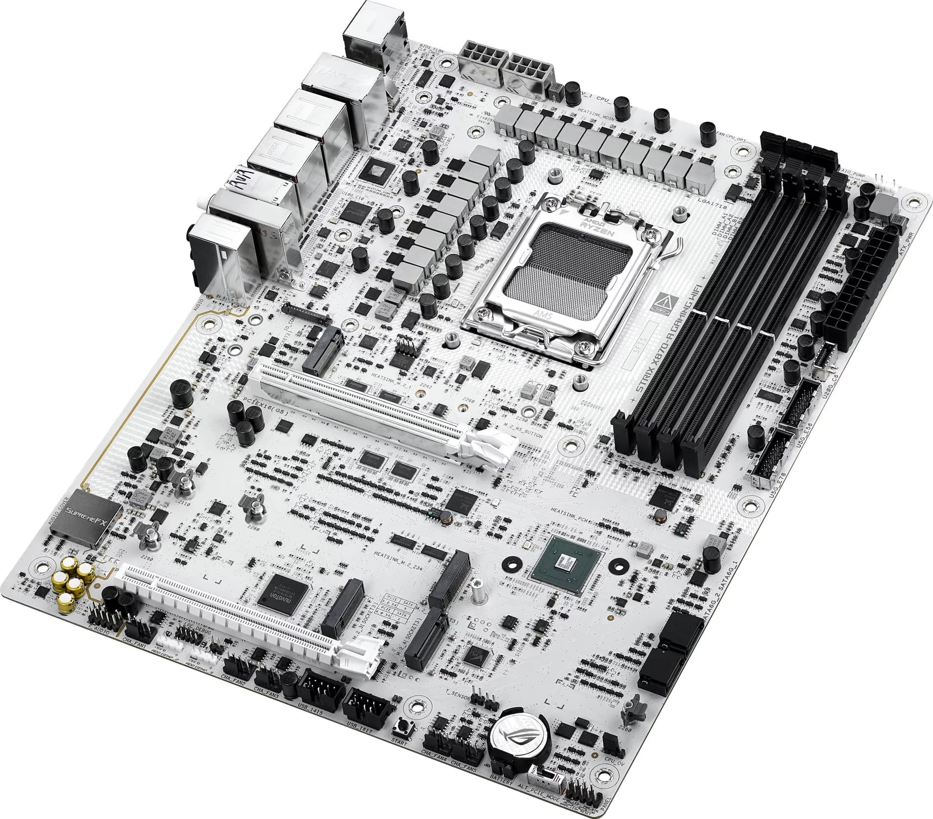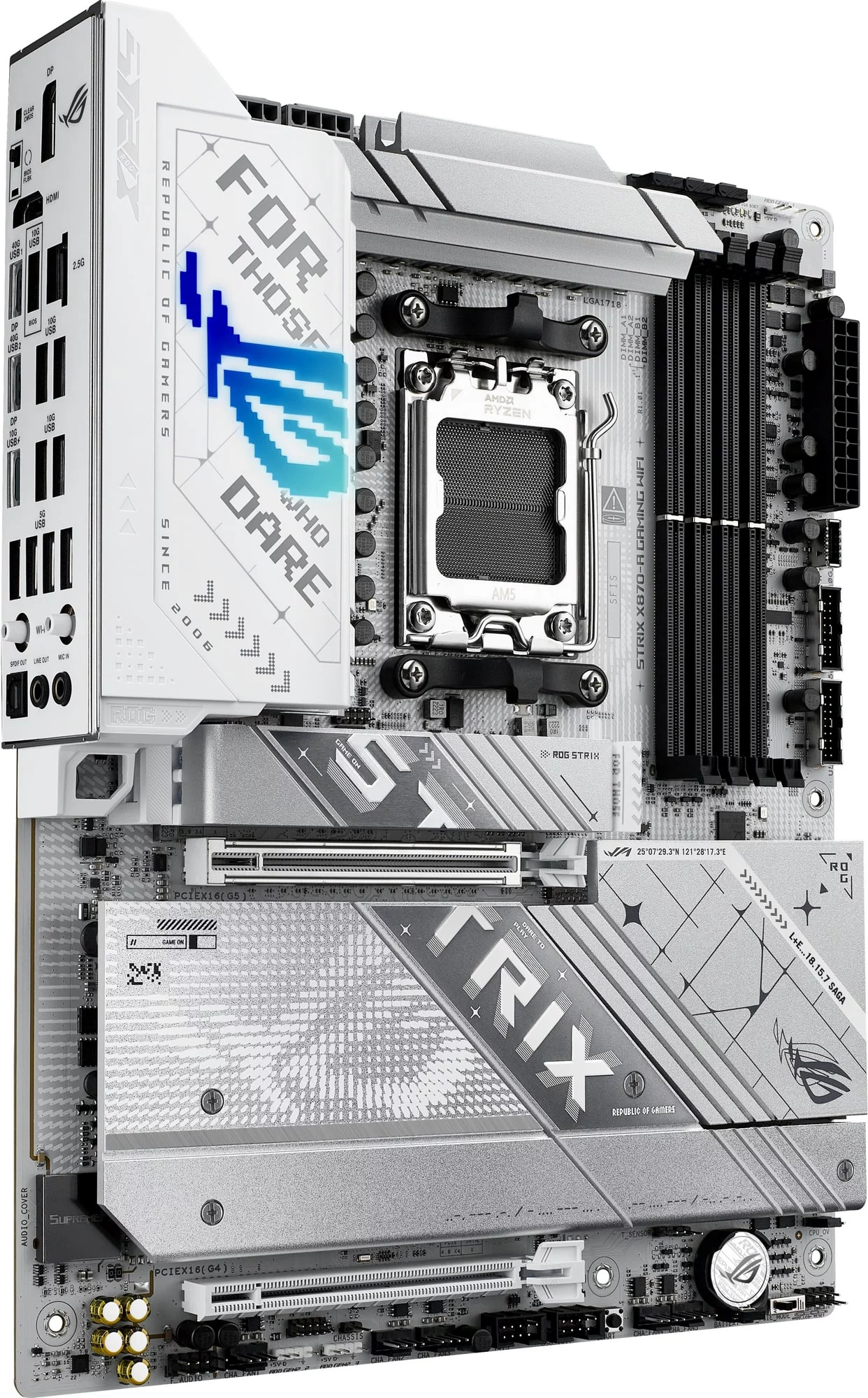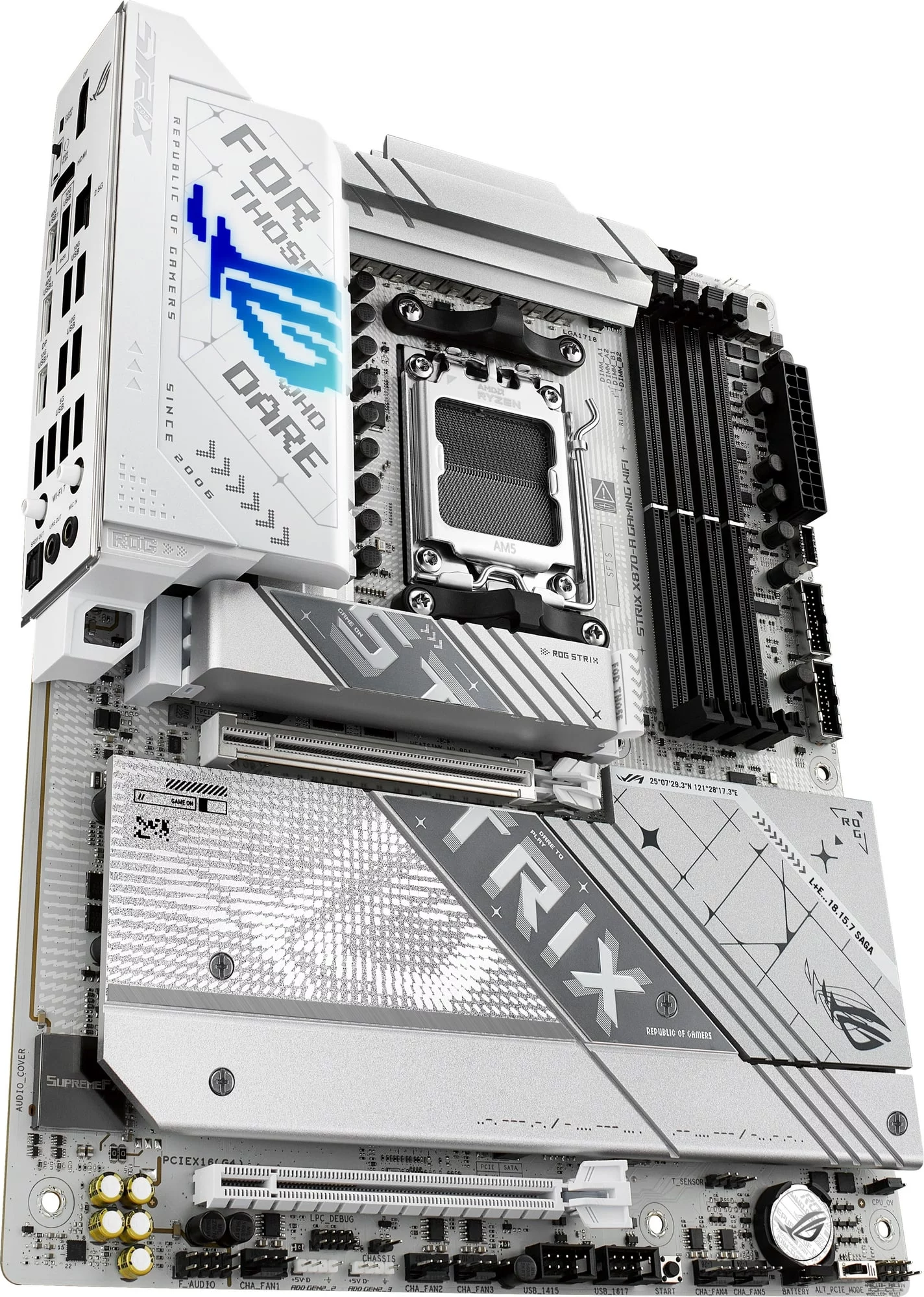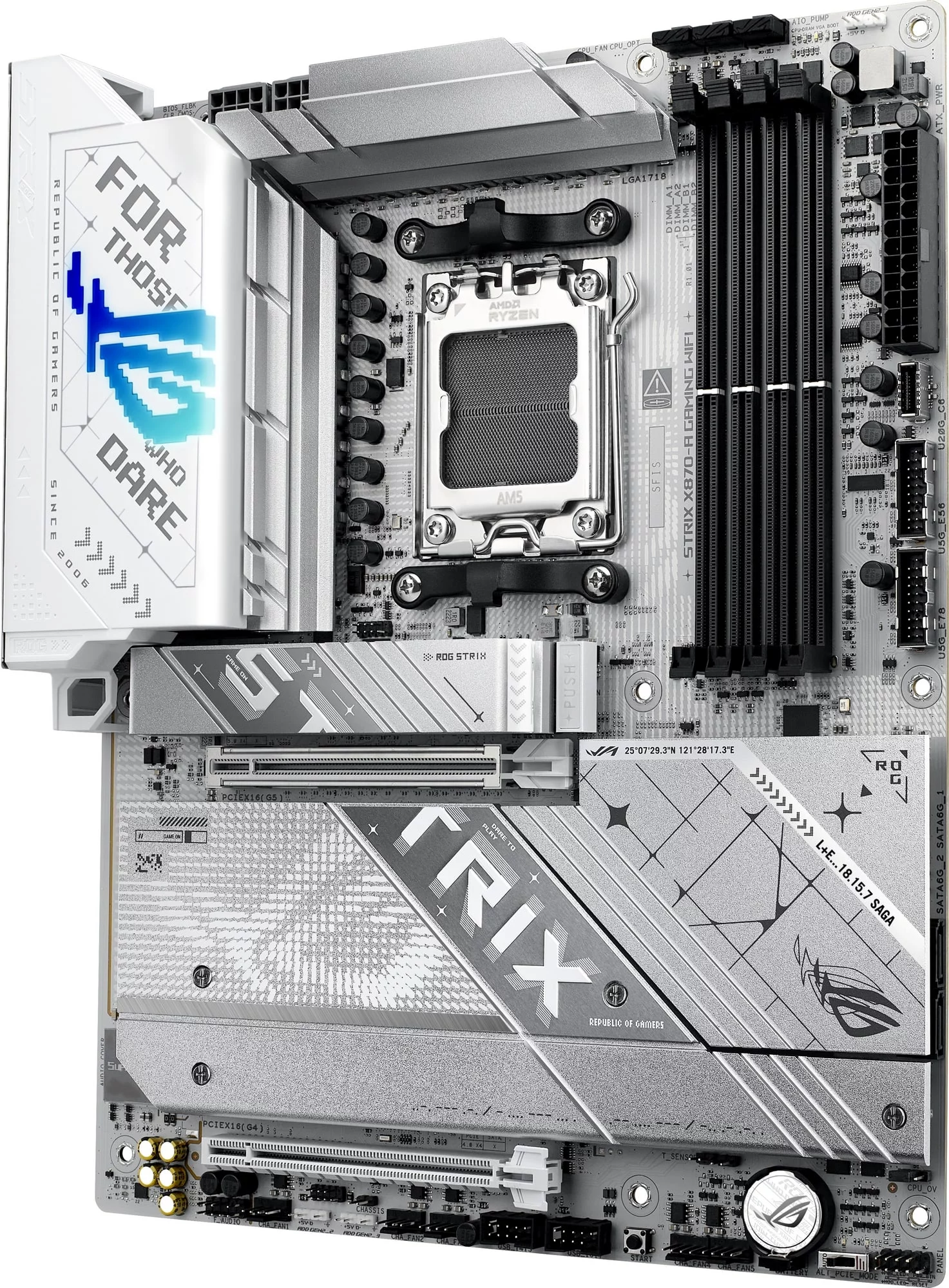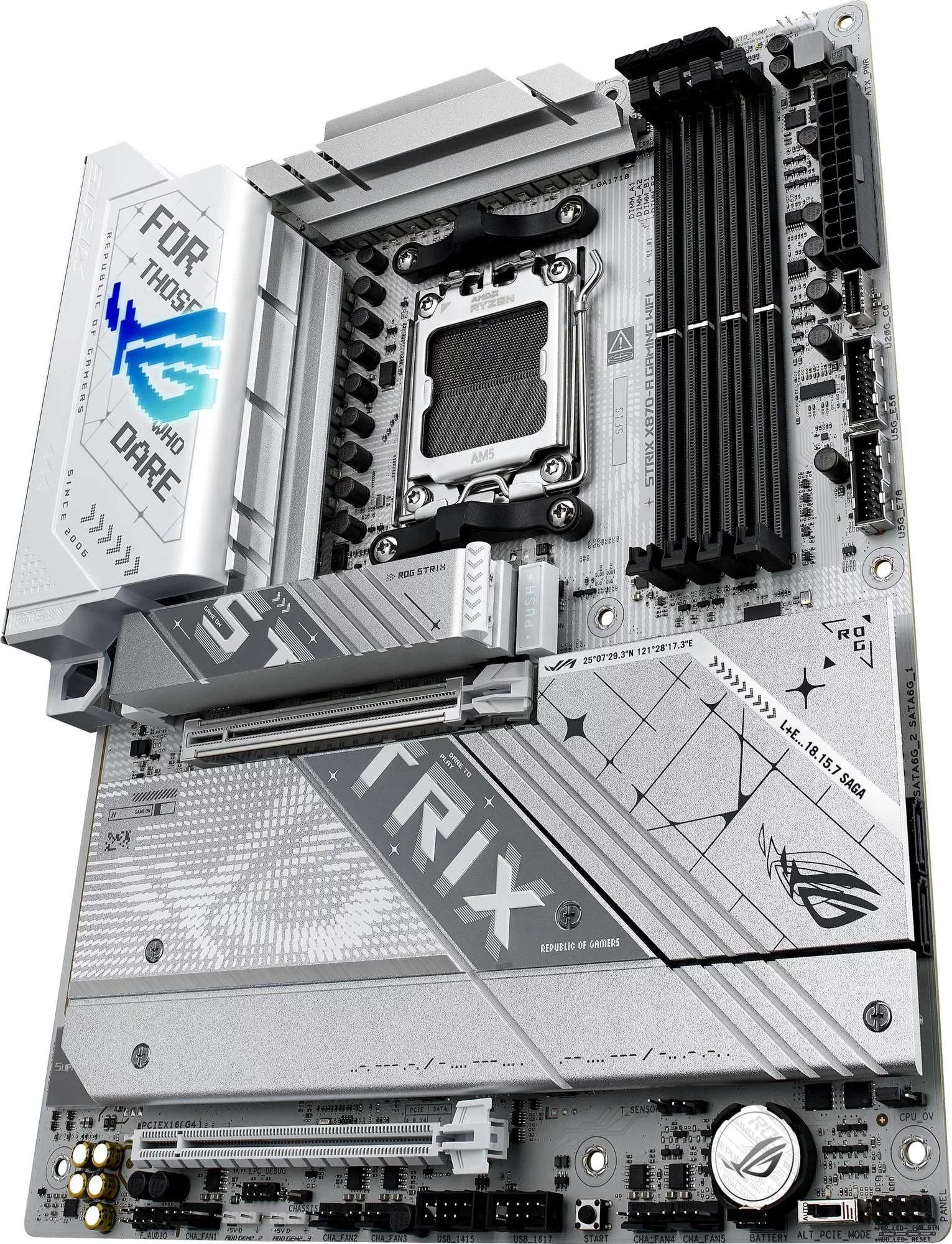Покращіть свою збірку за допомогою ROG Strix X870-A Gaming Wi-Fi. Завдяки гладкій білій друкованій платі та підтримці процесорів AMD Ryzen серії 9000 ця материнська плата забезпечує потужність і зв'язок, необхідні для просунутих програм зі штучним інтелектом. Завдяки підтримці DDR5, повним можливостям PCIe 5.0, двом портам USB4 та Wi-Fi 7 вона є ідеальним поєднанням стилю та продуктивності.