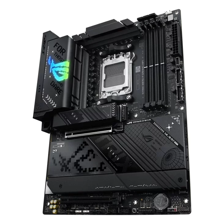 Ігрова материнська плата ROG Strix X870-F Gaming Wi-Fi створена для роботи з процесорами AMD Ryzen серії 9000 для настільних комп'ютерів. Її вдосконалена конструкція та рішення для штучного інтелекту забезпечують максимальну продуктивність, а два порти USB4, Wi-Fi 7 і високошвидкісні слоти DDR5 надають найсучасніші можливості підключення. Ця материнська плата забезпечує потужність і швидкість, необхідні для елітного геймінгу та вимог передових комп'ютерних програм зі штучним інтелектом.