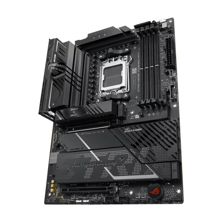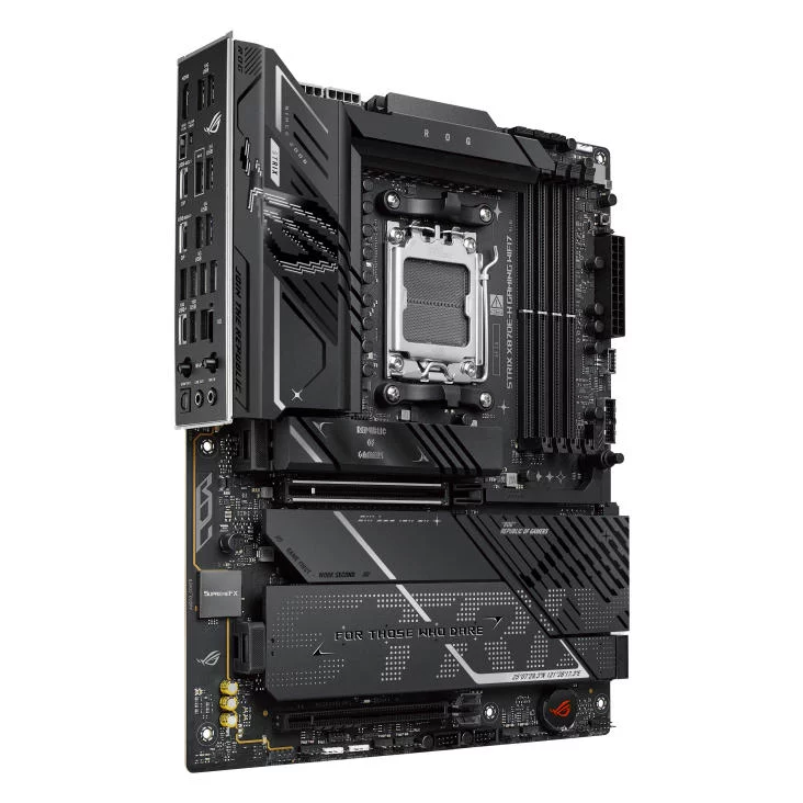 Перетворіть свій ігровий досвід за допомогою материнської плати ROG STRIX X870E-H GAMING WIFI7. Створена для домінування з настільними процесорами AMD Ryzen серії 9000, ця потужна ATX-плата має передову конструкцію живлення та рішення, вдосконалені за допомогою штучного інтелекту. Завдяки слотам PCIe 5.0 x16, двом портам USB4 Type-C і WiFi 7 вона забезпечує розширені можливості підключення. Функції, зручні для самостійного складання, такі як M.2 Q-Release на всіх чотирьох слотах M.2 і PCIe Slot Q-Release, спрощують складання та оновлення. Розкрийте весь потенціал своєї системи з ROG STRIX X870E-H GAMING WIFI7.
