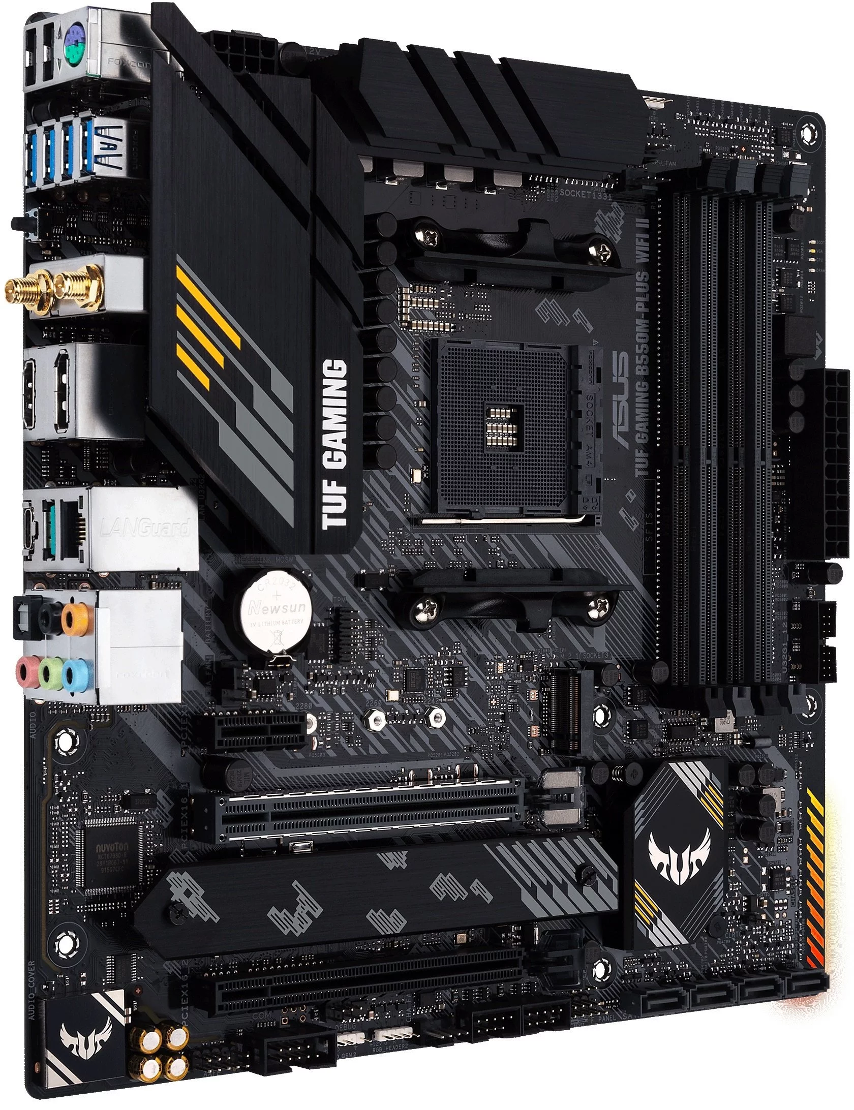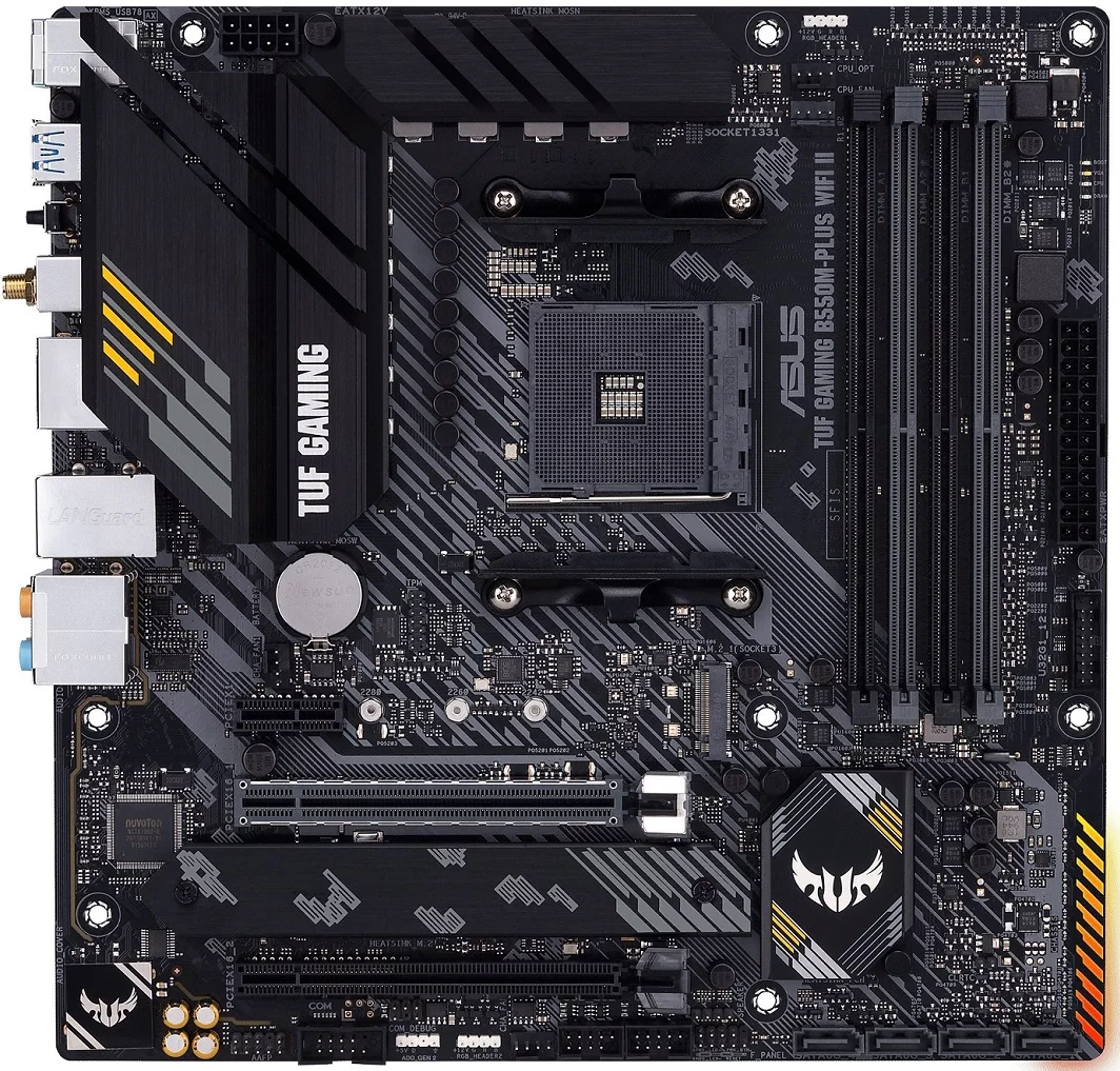 Материнська плата TUF Gaming B550M-Plus WIFI II розкриває всі основні можливості новітньої платформи AMD, доповнюючи їх ексклюзивними геймерськими функціями й надійністю, перевіреною часом. Відбірна елементна база, вдосконалена система живлення та сумісність із різними системами охолодження – ця материнська плата надає все для того, щоб отримати гарантовану стабільність і максимальну швидкодію в іграх. Під час створення ПК з використанням материнської плати серії TUF Gaming ви також отримуєте переваги альянсу TUF Gaming Alliance, у межах якого компанія ASUS співпрацює з надійними галузевими партнерами з метою забезпечити легкість складання, гарантовану сумісність компонентів і додаткову естетику готового рішення.