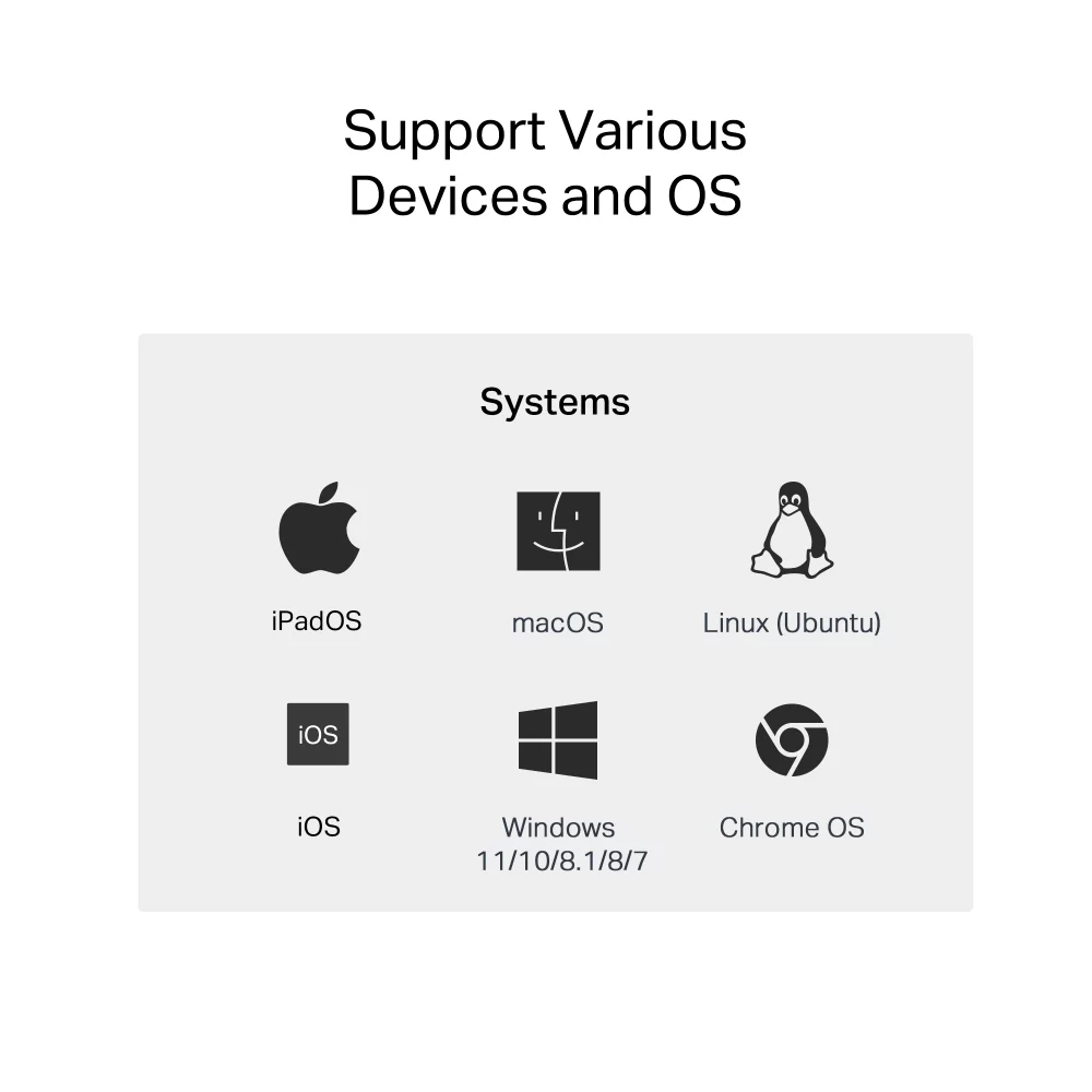 Chrome OS, iOS, iPadOS, Linux, Mac OS, Windows 10, Windows 11, Windows 7, Windows 8, Windows 8.1