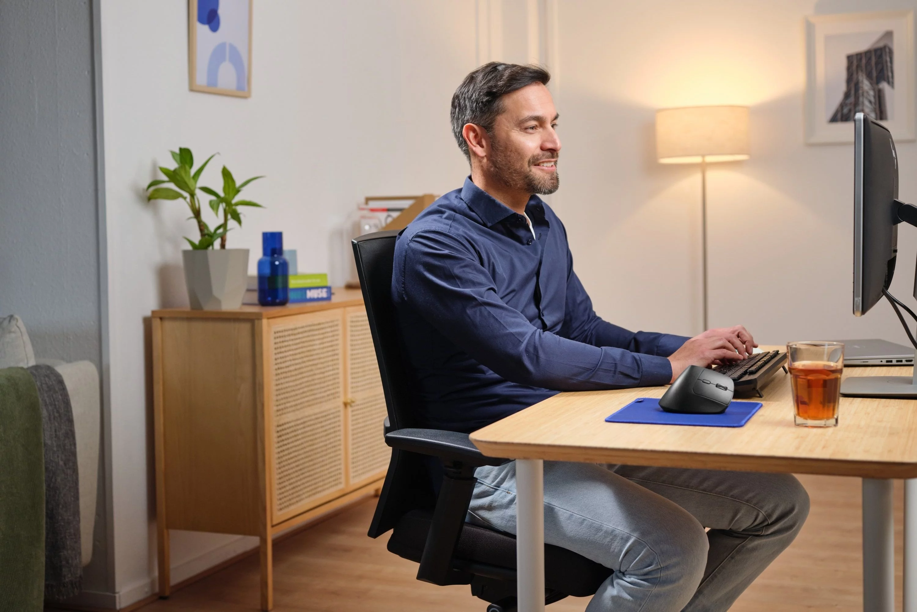 Отримайте більше задоволення від робочого дня з мишею Bayo+. Цю мишу з оптимальним кутом нахилу 57 градусів розробили з урахуванням ергономіки, щоб ваша рука та зап'ястя перебували в найзручнішому та найприроднішому положенні для комфортнішої роботи.