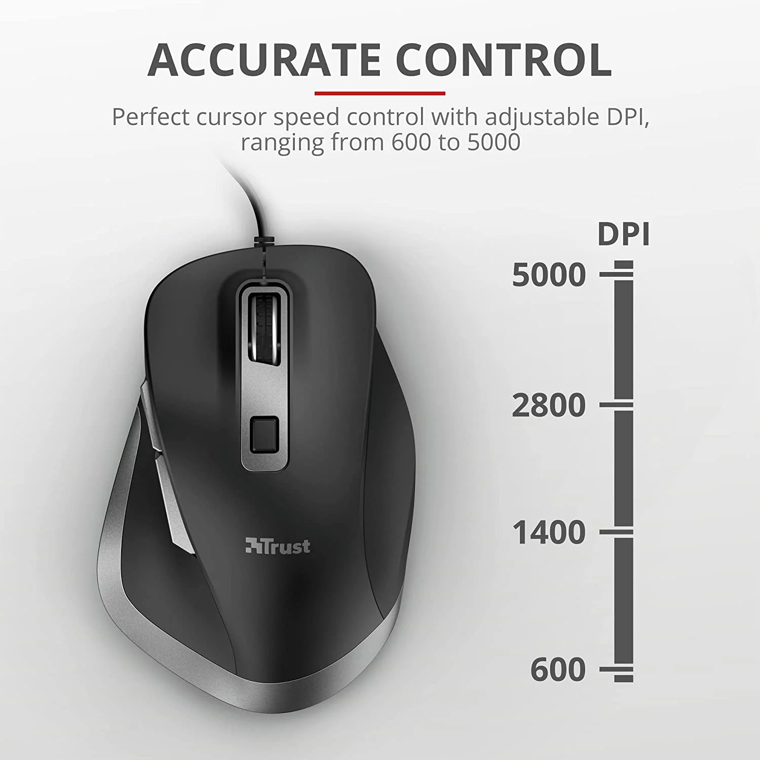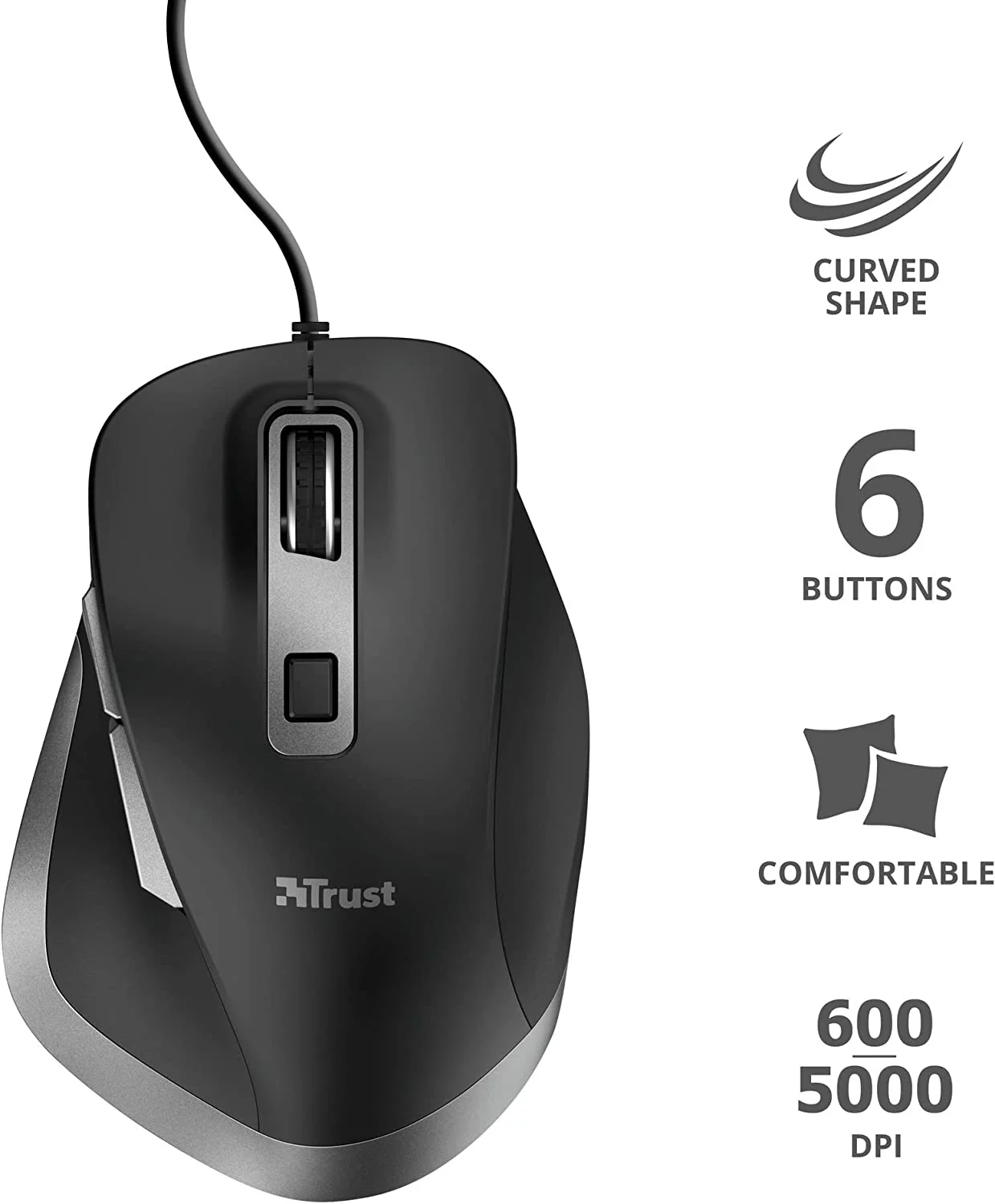 Миша Trust Fyda ComFortable ECO, USB-A, чорно-сірий