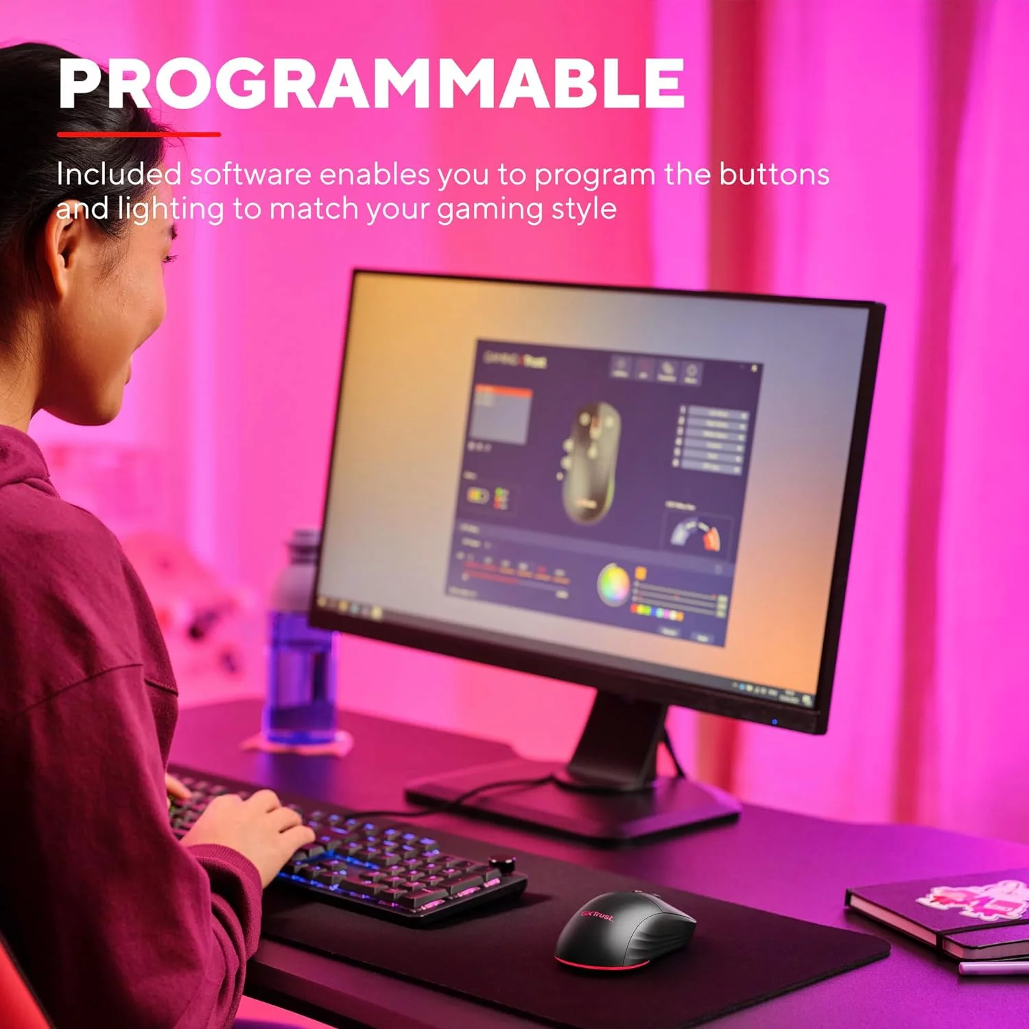 Trust GXT926 Redex II пропонує два режими використання: бездротовий для свободи рухів і дротовий для безперервного ігрового процесу. З бездротовим USB-адаптером 2,4 ГГц миша працює до 60 годин без підзарядки, а з кабелем Play & Charge завдовжки 1.6 м ви завжди залишитеся в грі.