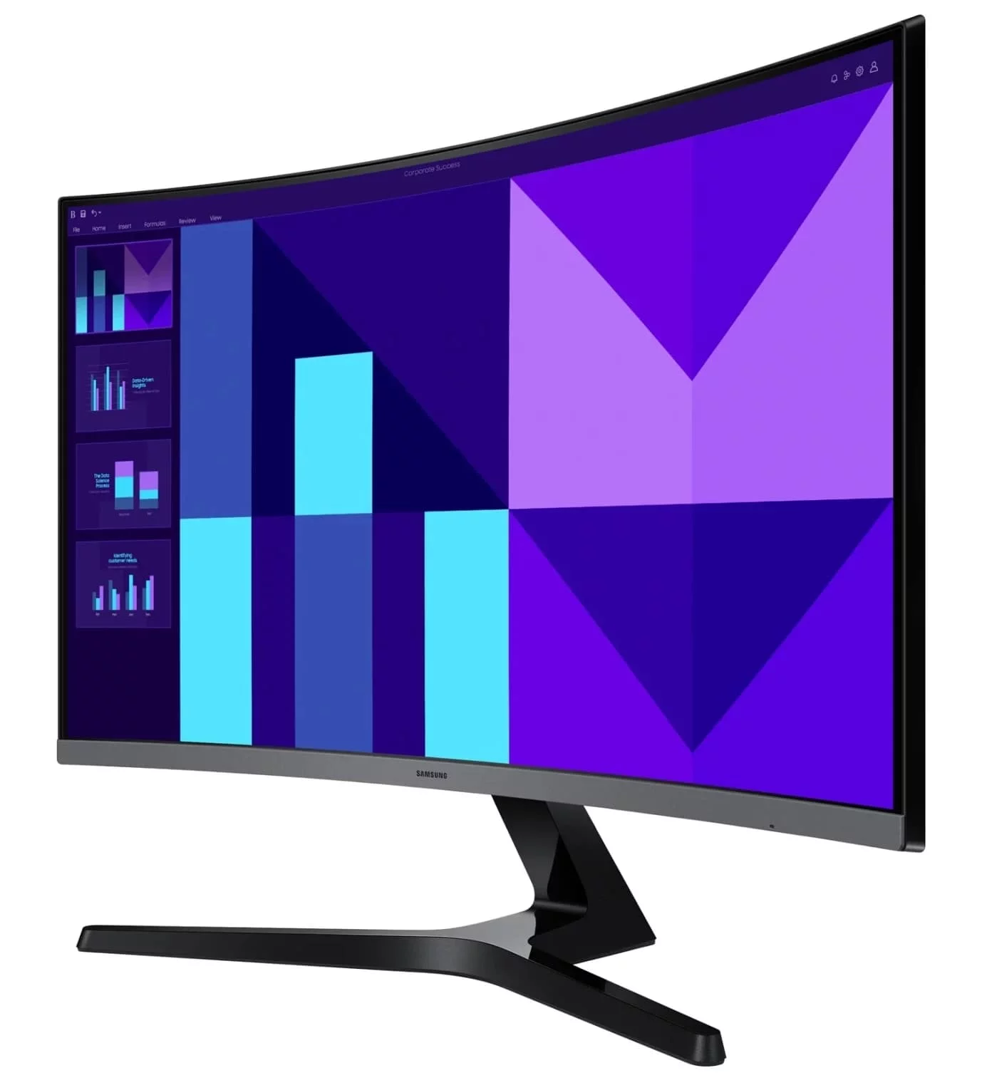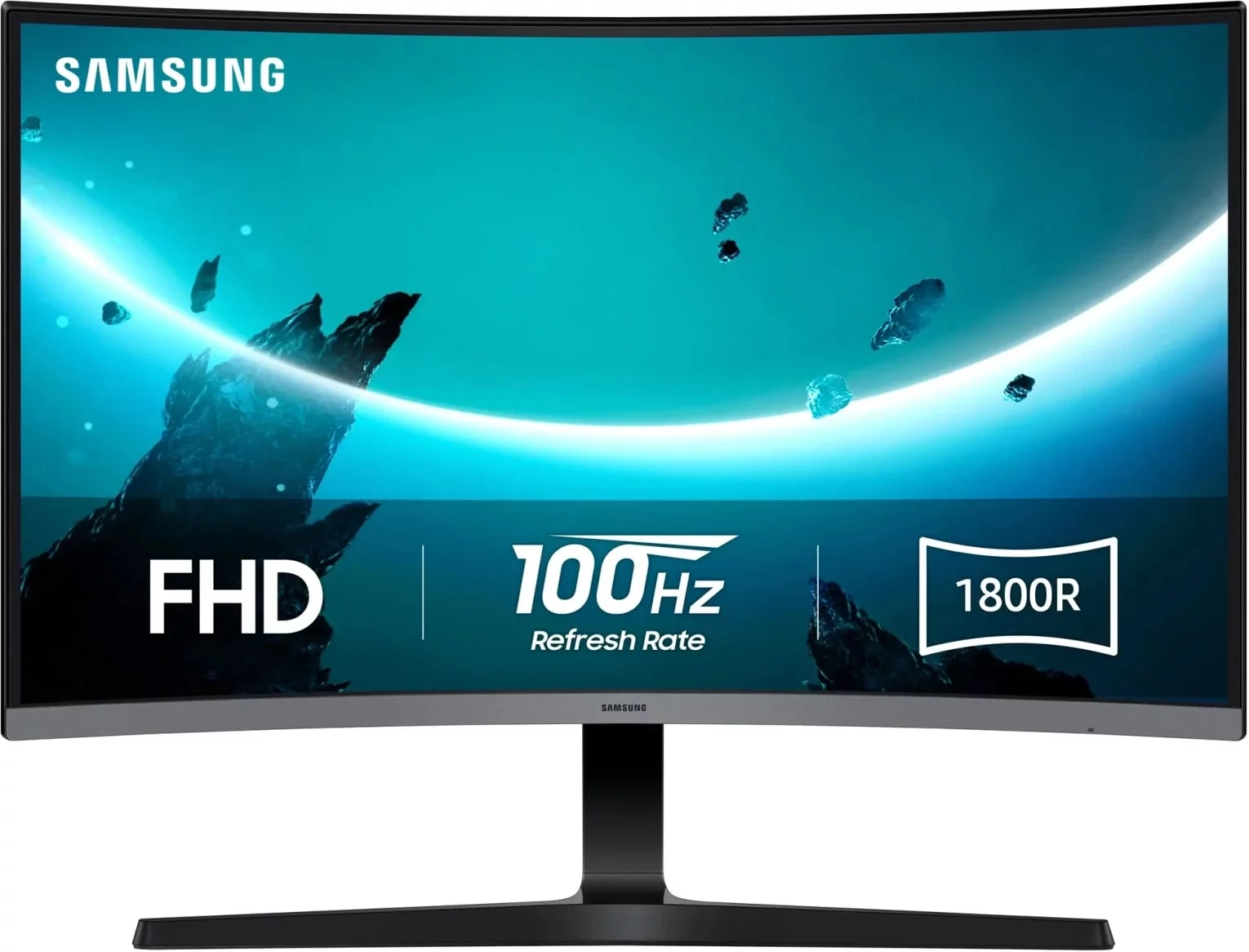 Samsung S27D390 — вигнутий (1800R) 27″ монітор із матрицею VA, роздільною здатністю Full HD (1920×1080), частотою оновлення до 100 Гц і часом відгуку 4 мс. Має HDMI та VGA входи, антивідблискове покриття та дизайн, що знижує навантаження на очі.