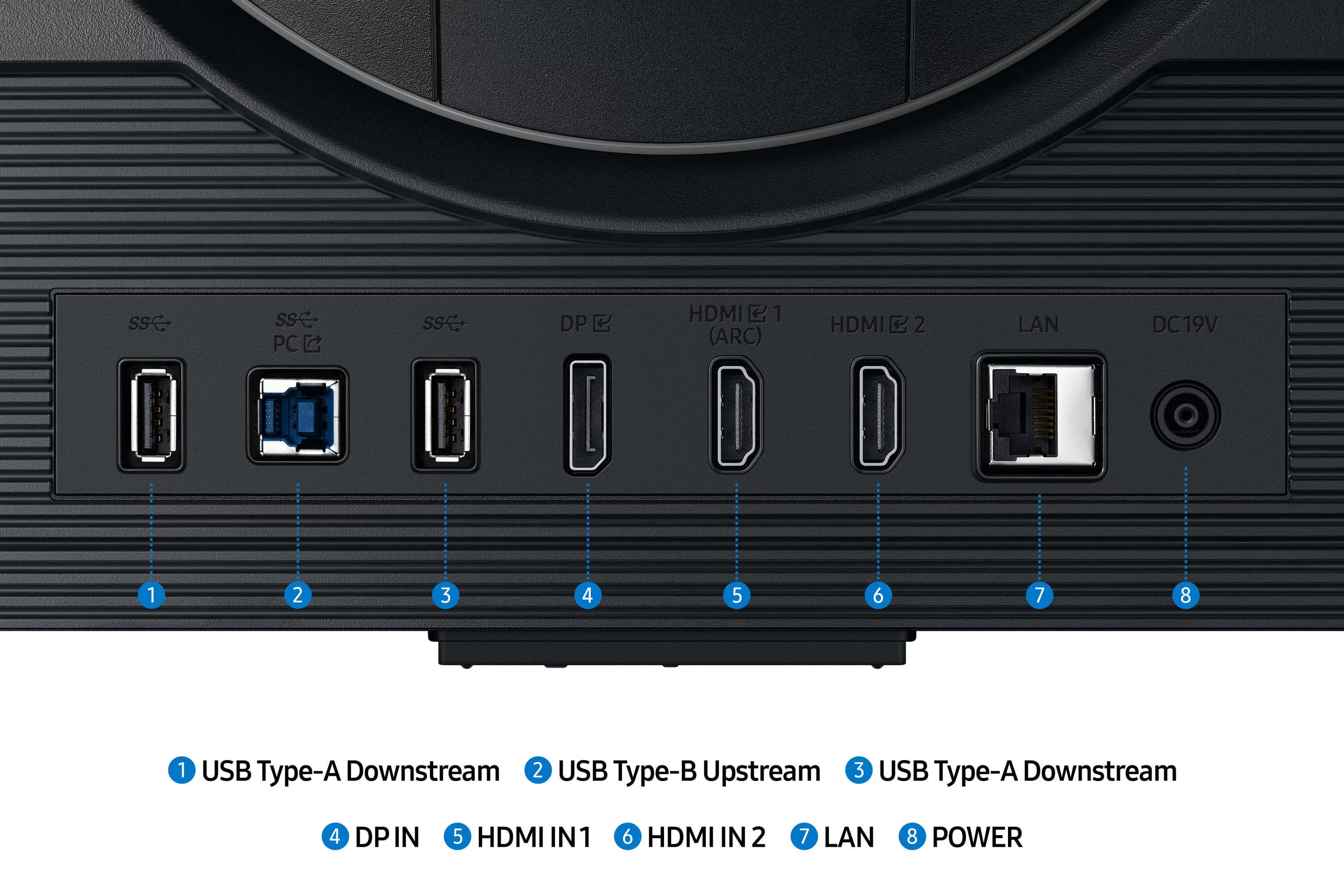 HDMI(v2.1), LAN, LAN RJ-45, USB концентратор, USB-B Upstream Port, 1 x DisplayPort v1.4