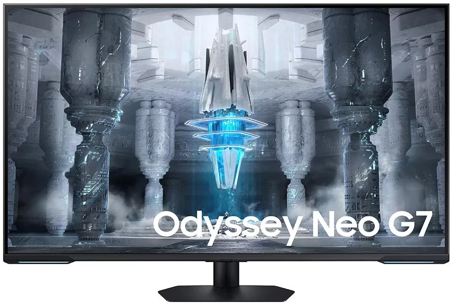 Монітор Samsung Odyssey NEO G7 - це 43-дюймовий дисплей з високою роздільною здатністю 3840x2160, технологією VA і з інтелектуальною системою. Він підтримує підключення через HDMI, DP і USB, має частоту оновлення 144 Гц і швидкий час реакції 1 мс.