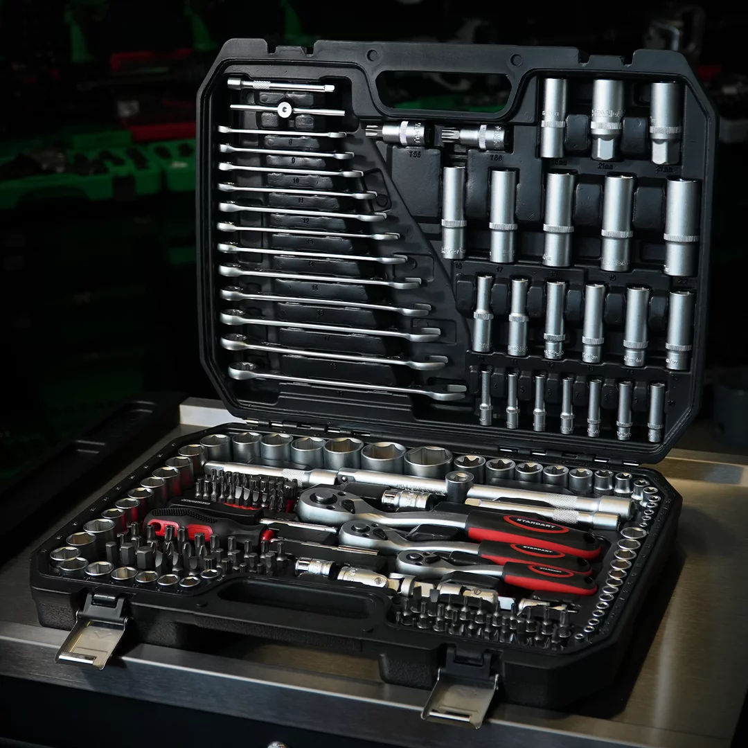 Комбінований набір інструментів STANDART ST-0216 – універсальне рішення для професійного та побутового використання. У комплекті 216 предметів, які охоплюють усі основні потреби при ремонті автомобілів, техніки та виконанні монтажних робіт.