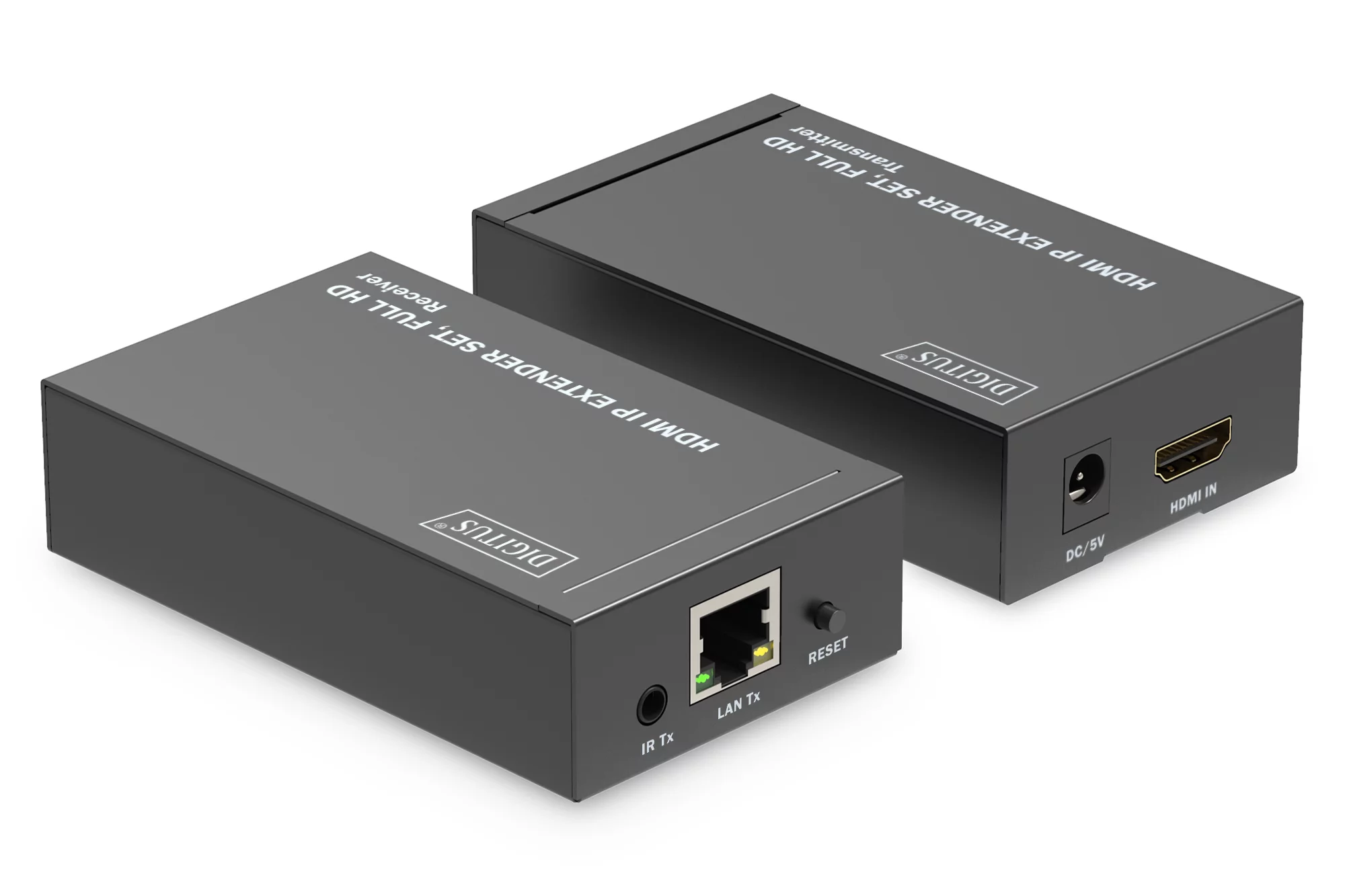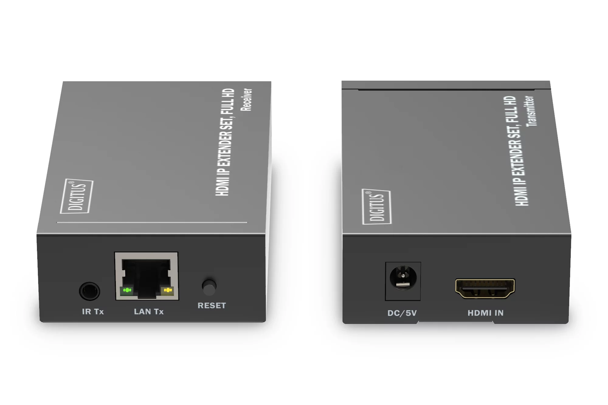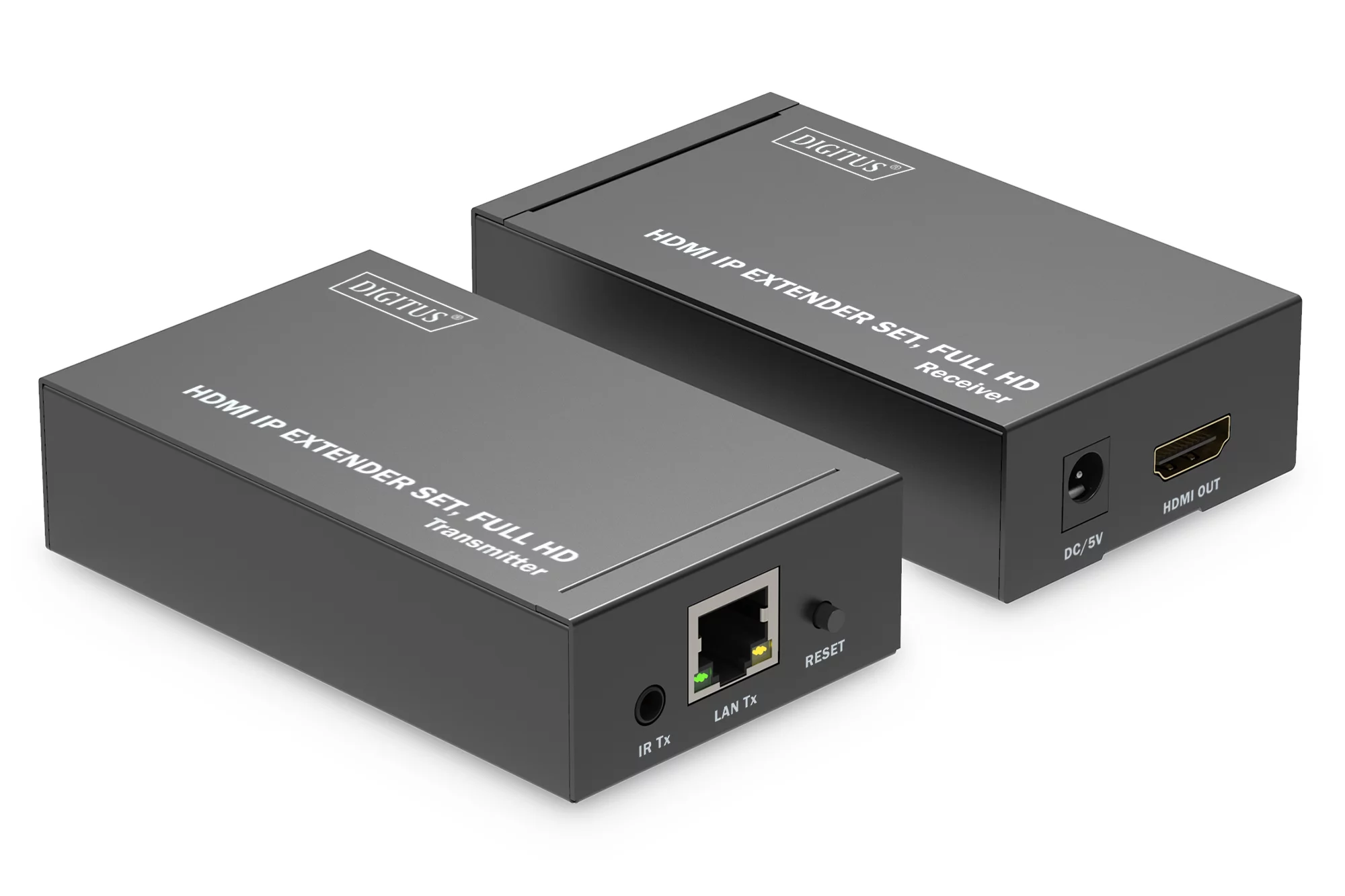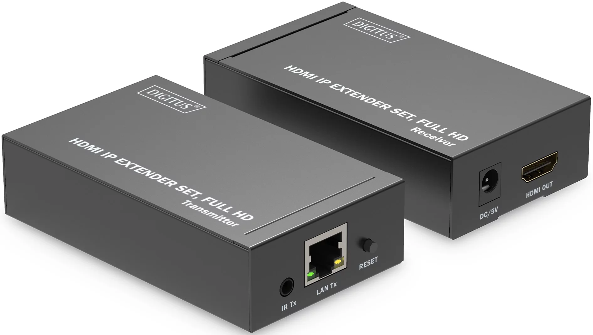 HDMI Extender Set — це потужна система розподілу відео, яка складається з одного передавача/приймача. Він розширює сигнали Full HD AV за допомогою мережевого кабелю CAT6 (з’єднання «точка-точка») до 120 м. Крім того, використовуючи мережеві комутатори та окремі блоки приймача (DS-55518), ви можете поширювати свій відеоконтент до 253 дисплеїв через уже існуючу мережу (IP-з’єднання) і розширювати їх на необмежену відстань. Додатковий інтегрований односпрямований ІЧ-інтерфейс дозволяє дистанційно керувати джерелом вхідного сигналу з вихідного екрана (сторона приймача).