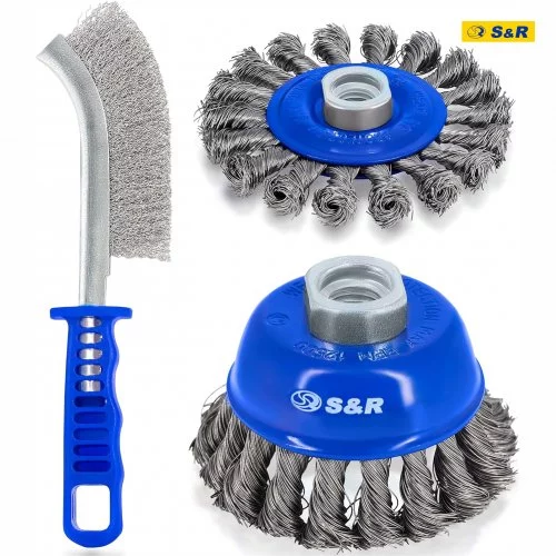 Набір щіток S&R 3 шт – включає 3 інструменти для обробки поверхні металу, зняття лаку та фарби, видалення іржі тощо.