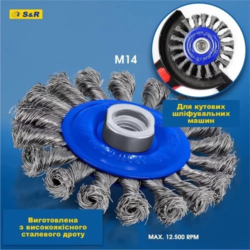 • Чашкова та дискова щітки підходять для використання разом із болгаркою з посадковим отвором М14.