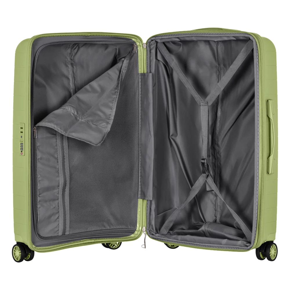можливість розширення (збільшення об`єму), передбачено розділювачі та регульовані пакувальні паски всередині, подвійні колеса