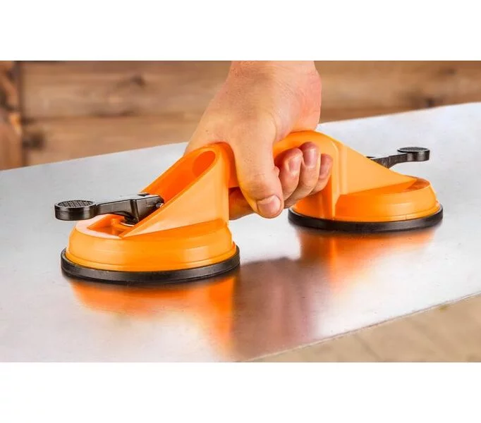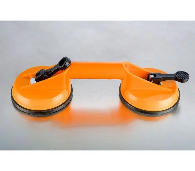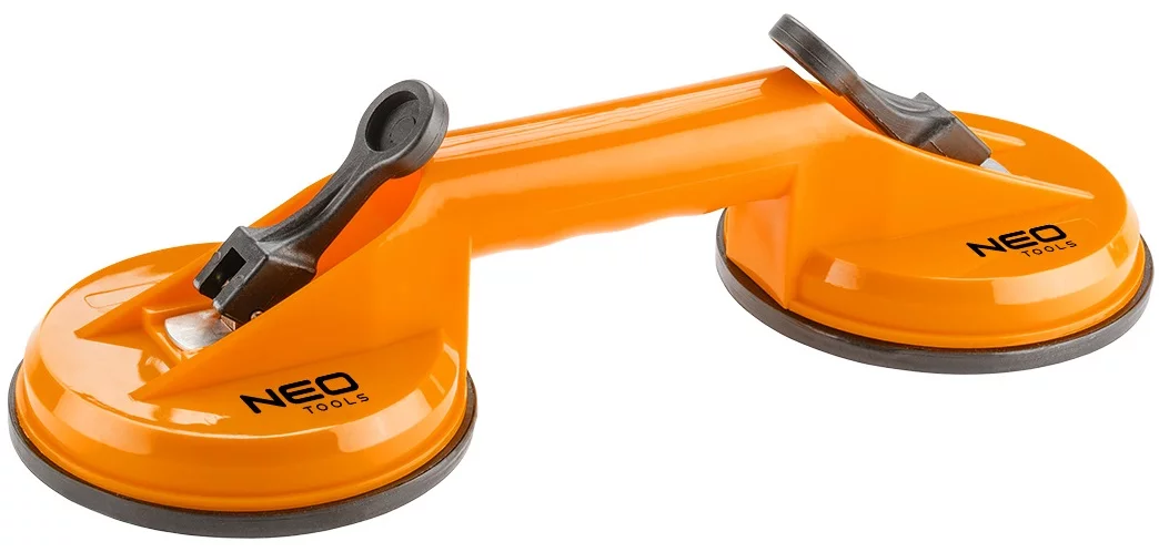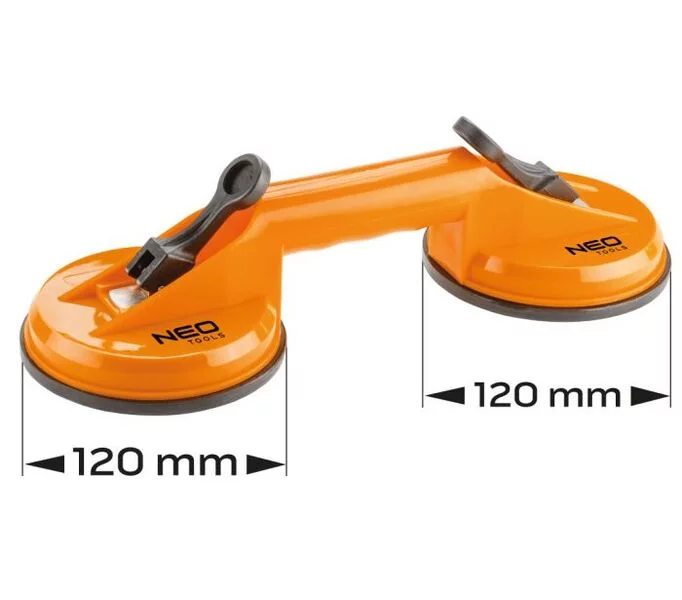 Подвійна скляна присоска, 80 кг, 56-806 від NEO - це інструмент, призначений для переміщення матеріалів з плоскими і гладкими поверхнями. Він ідеально підходить для перевезення скла (віконного або автомобільного), жерсті, керамічної плитки або ламінату. Основа виготовлена з гуми, а засувки - з високоякісного пластику. Присоска має діаметр 2 х 120 мм і вантажопідйомність до 80 кг.